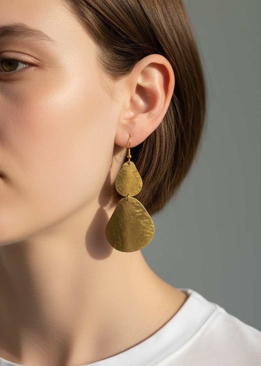 Kolczyki z mosiądzu wykonane w Indiach to unikalny dodatek o lekko surowym, lecz eleganckim charakterze. Ręczne wykonanie nadaje im niepowtarzalne detale i naturalny, ciepły połysk metalu. Dzięki wysokiej trwałości mosiądz dobrze sprawdza się na co dzień oraz na okazje wieczorowe. Lekka waga i wygodny haczyk zapewniają komfort noszenia przez długi czas. Produkt łączy tradycyjne rzemiosło z nowoczesnym designem, świetnie komponując się z różnorodnymi stylizacjami.