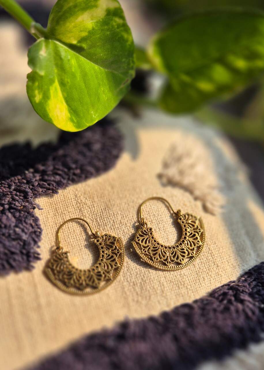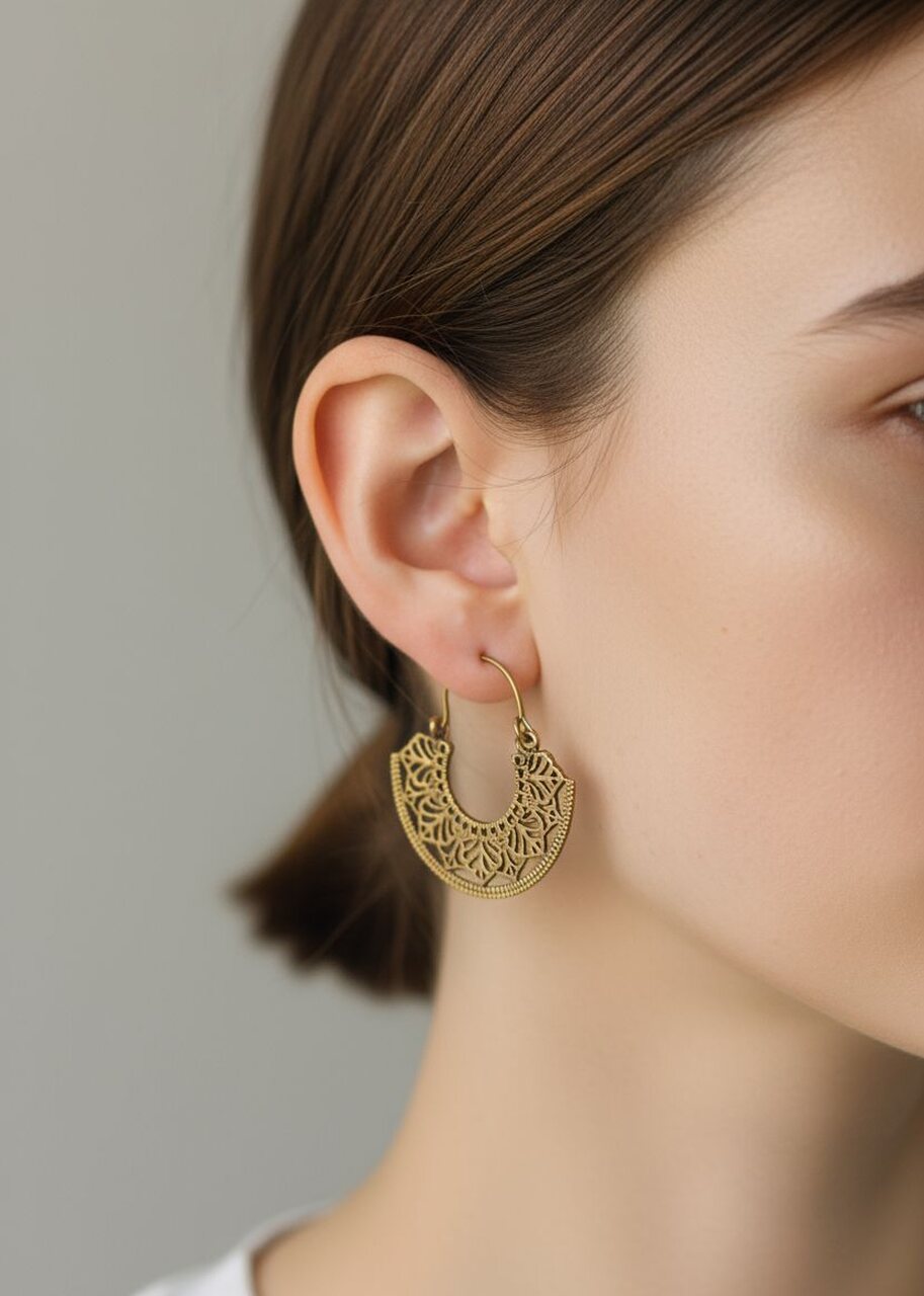 Kolczyki z mosiądzu wykonane w Indiach to unikalny dodatek o lekko surowym, lecz eleganckim charakterze. Ręczne wykonanie nadaje im niepowtarzalne detale i naturalny, ciepły połysk metalu. Dzięki wysokiej trwałości mosiądz dobrze sprawdza się na co dzień oraz na okazje wieczorowe. Lekka waga i wygodny haczyk zapewniają komfort noszenia przez długi czas. Produkt łączy tradycyjne rzemiosło z nowoczesnym designem, świetnie komponując się z różnorodnymi stylizacjami.![]()
