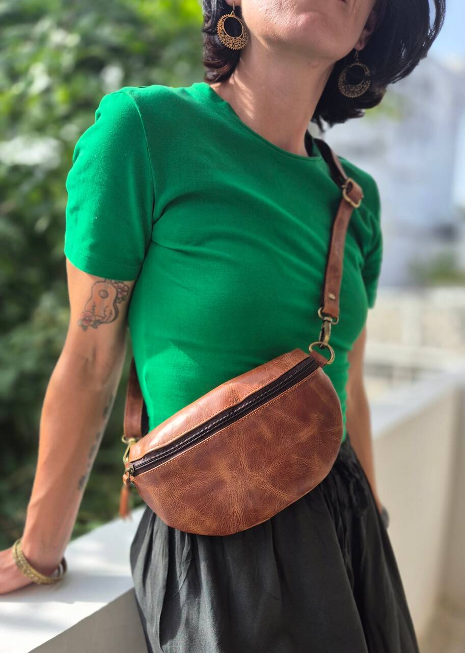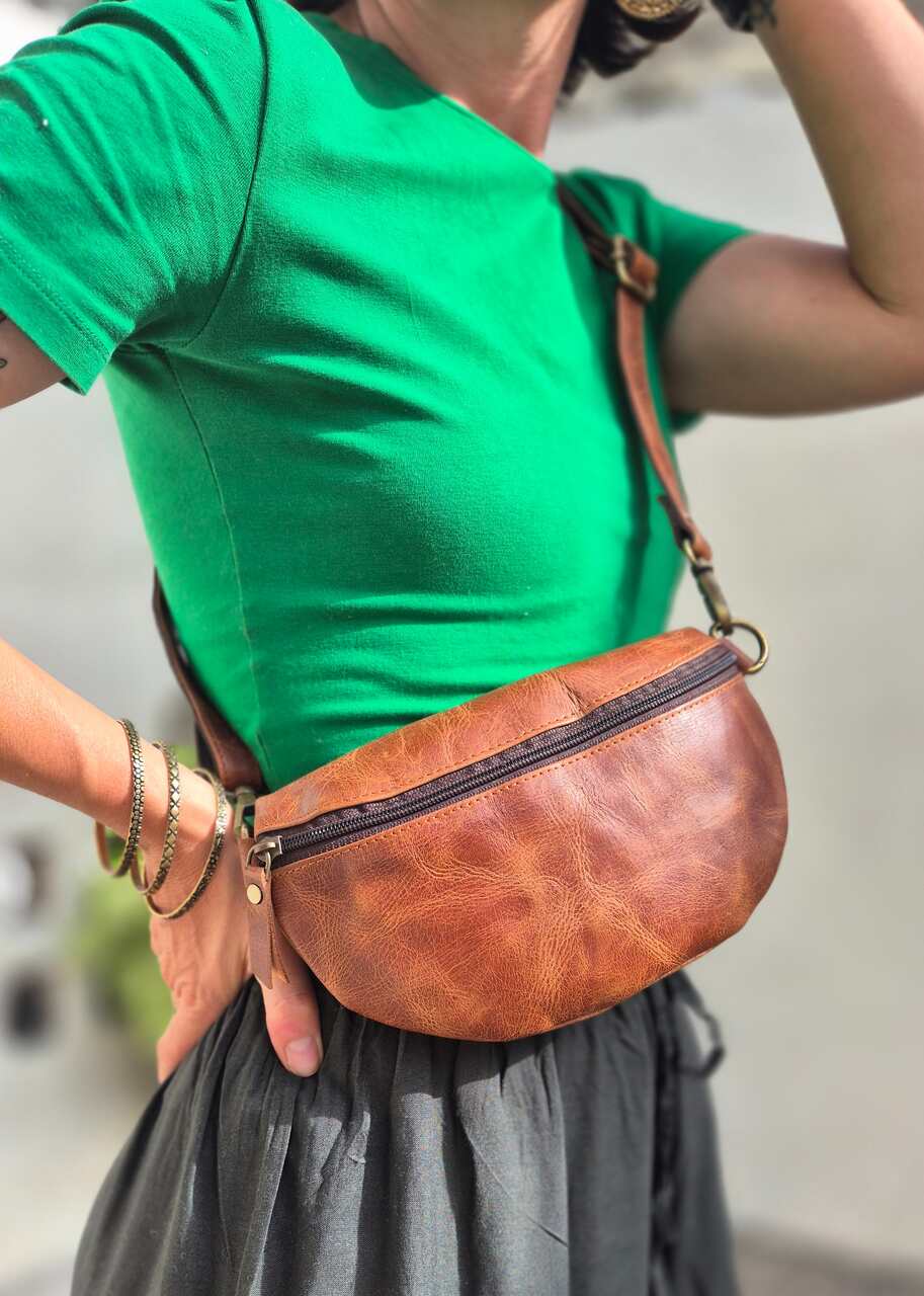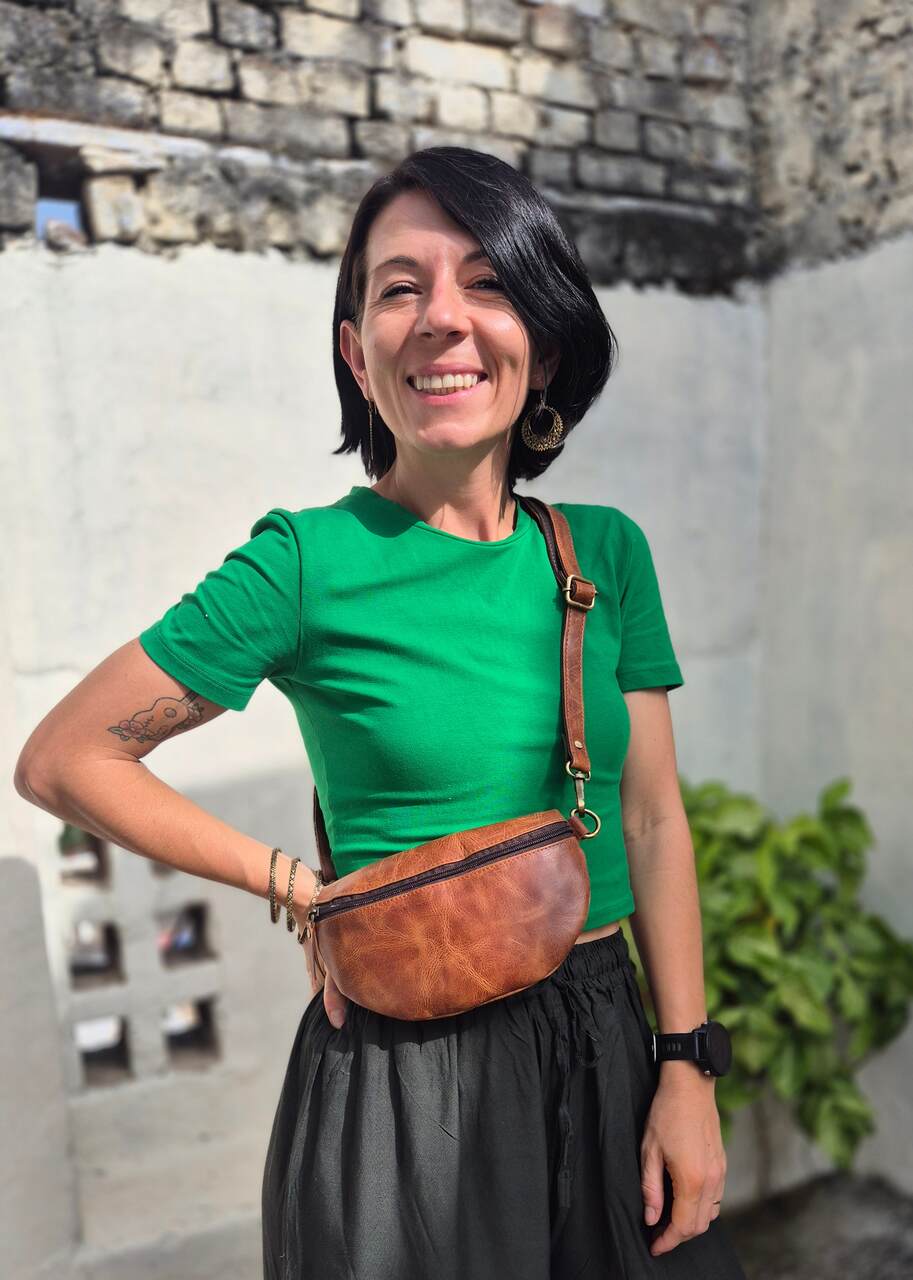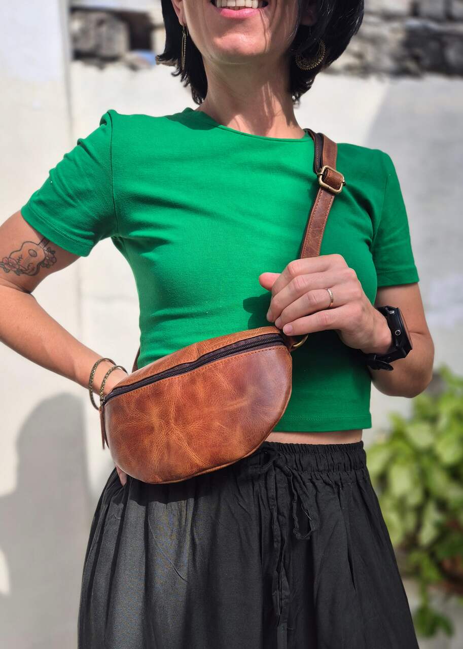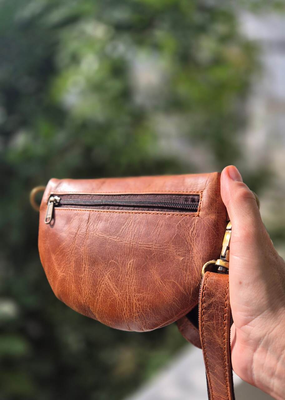 Mała klasyczna półokrągła nerka ze skóry naturalnej, starannie wykonana w Indiach. Swoim uniwersalnym kształtem doskonale wpisuje się w codzienny zestaw dodatków, podkreślając klasyczny styl. Wykonana z naturalnej skóry o delikatnym połysku, charakteryzuje się wysoką trwałością i miękkością dotyku. Zamykana na suwak, zapewnia wygodne przechowywanie podstawowych rzeczy, takich jak telefon, klucze i portfel. Niska, kompaktowa konstrukcja sprawia, że towarzyszy komfortowo podczas spacerów i podróży, nie zajmując wiele miejsca. Każda nerka ma unikalny charakter dzięki naturalnym cechom skóry, takim jak tekstura i kolory, które mogą nieznacznie się różnić między egzemplarzami. Produkt wykończony estetycznie, z dbałością o szczegóły, gwarantuje elegancki wygląd w codziennym użytkowaniu.