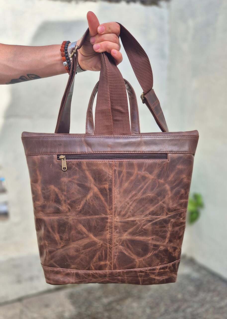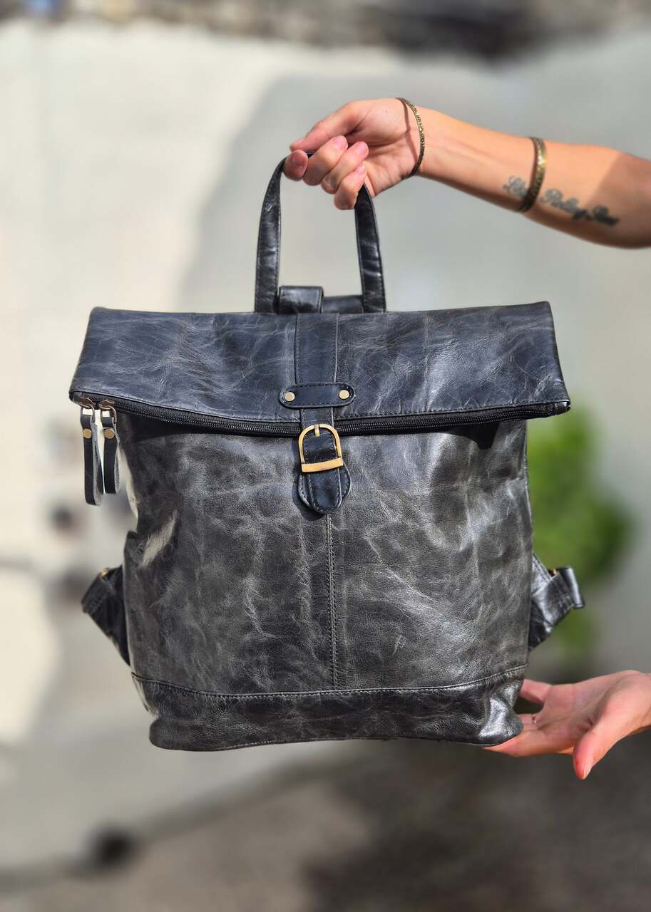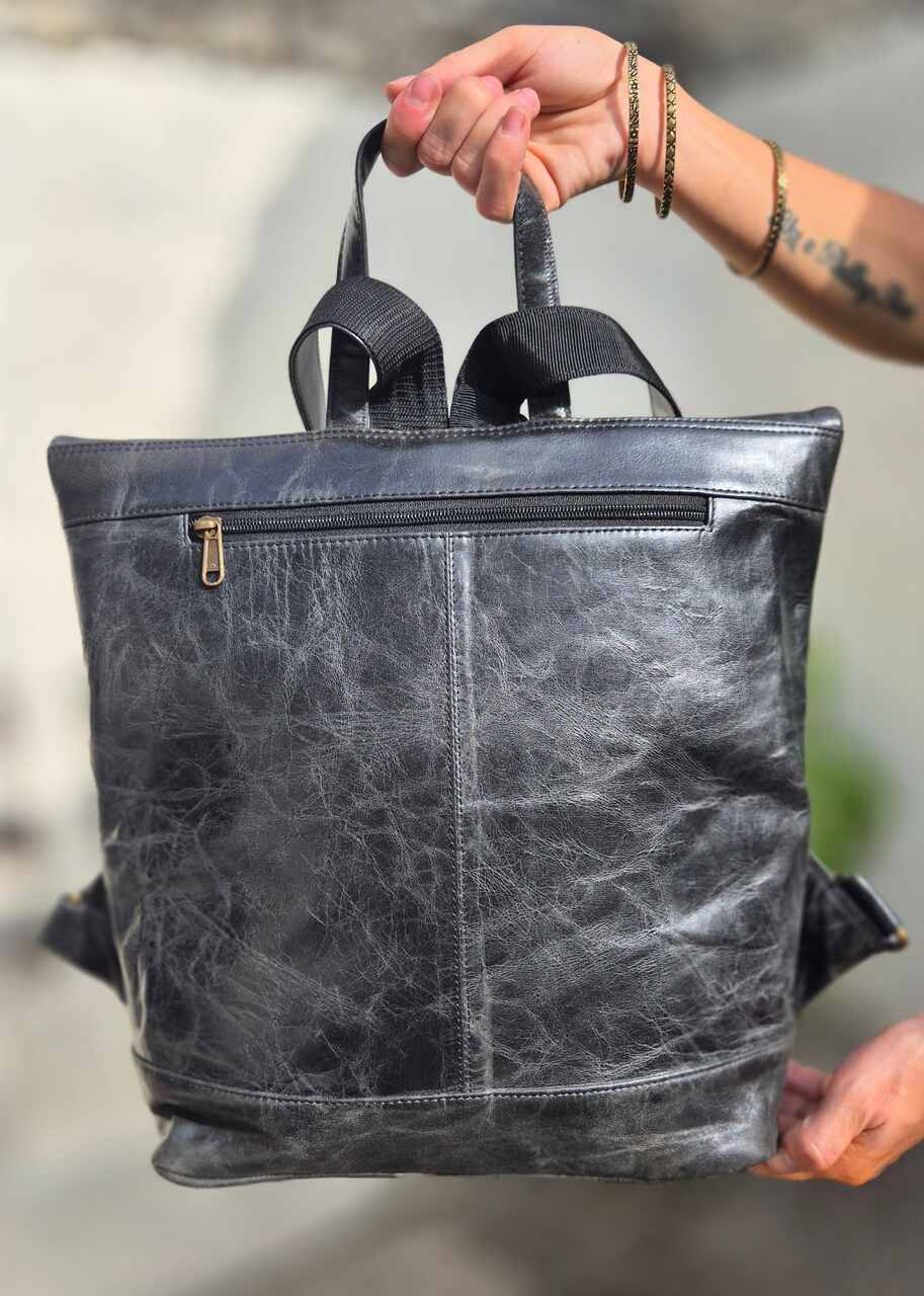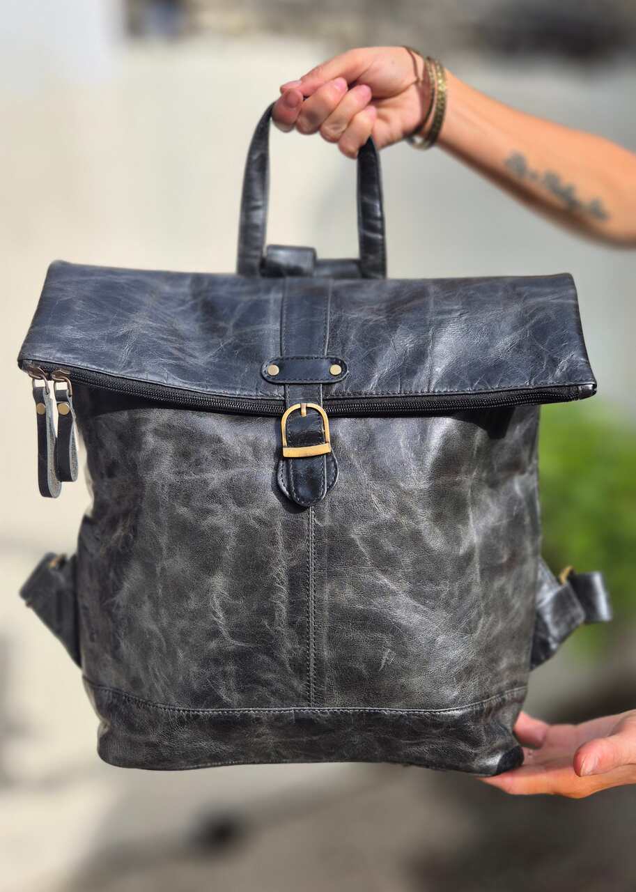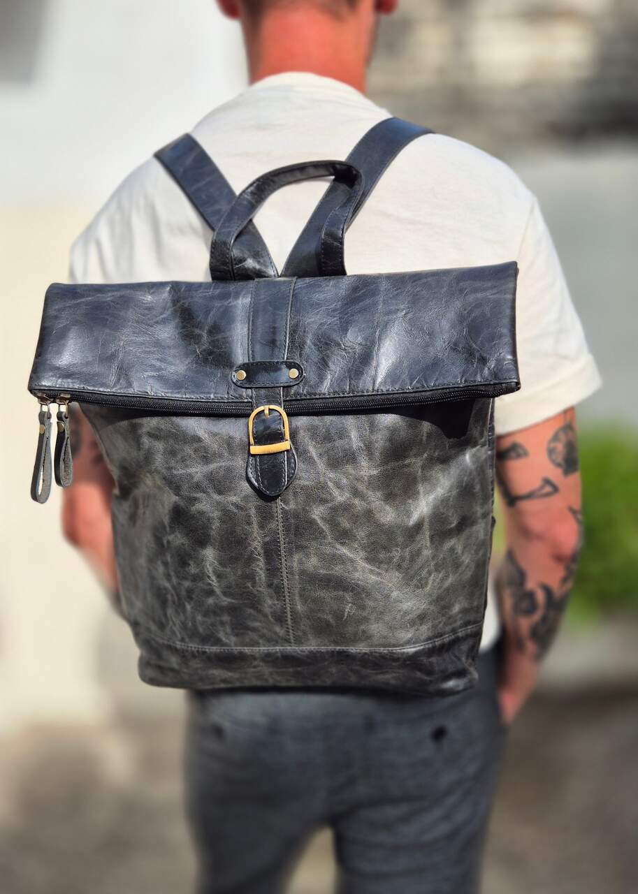 Ręcznie wykonany plecak ze skóry naturalnej, stworzony w Indiach. Plecak wykonany jest ze starannie wyselekcjonowanych materiałów, które gwarantują trwałość i naturalny charakter skóry. Konstrukcja plecaka jest zwijana, co nadaje mu minimalistyczny, ale funkcjonalny wygląd i możliwość regulacji objętości. Wykończenia są precyzyjne, a szwy mocne, co zapewnia długą żywotność nawet przy codziennym użytkowaniu. Naturalne odcienie skóry podkreślają autentyczność produktu i każdy egzemplarz ma unikalną fakturę skóry. Plecak łączy tradycyjne rzemiosło z praktycznością, idealny do miejskiego stylu życia oraz podróży. Dzięki kompaktowej formie, po złożeniu zajmuje niewiele miejsca, a po rozłożeniu zyskuje pełną pojemność na codzienne rzeczy.