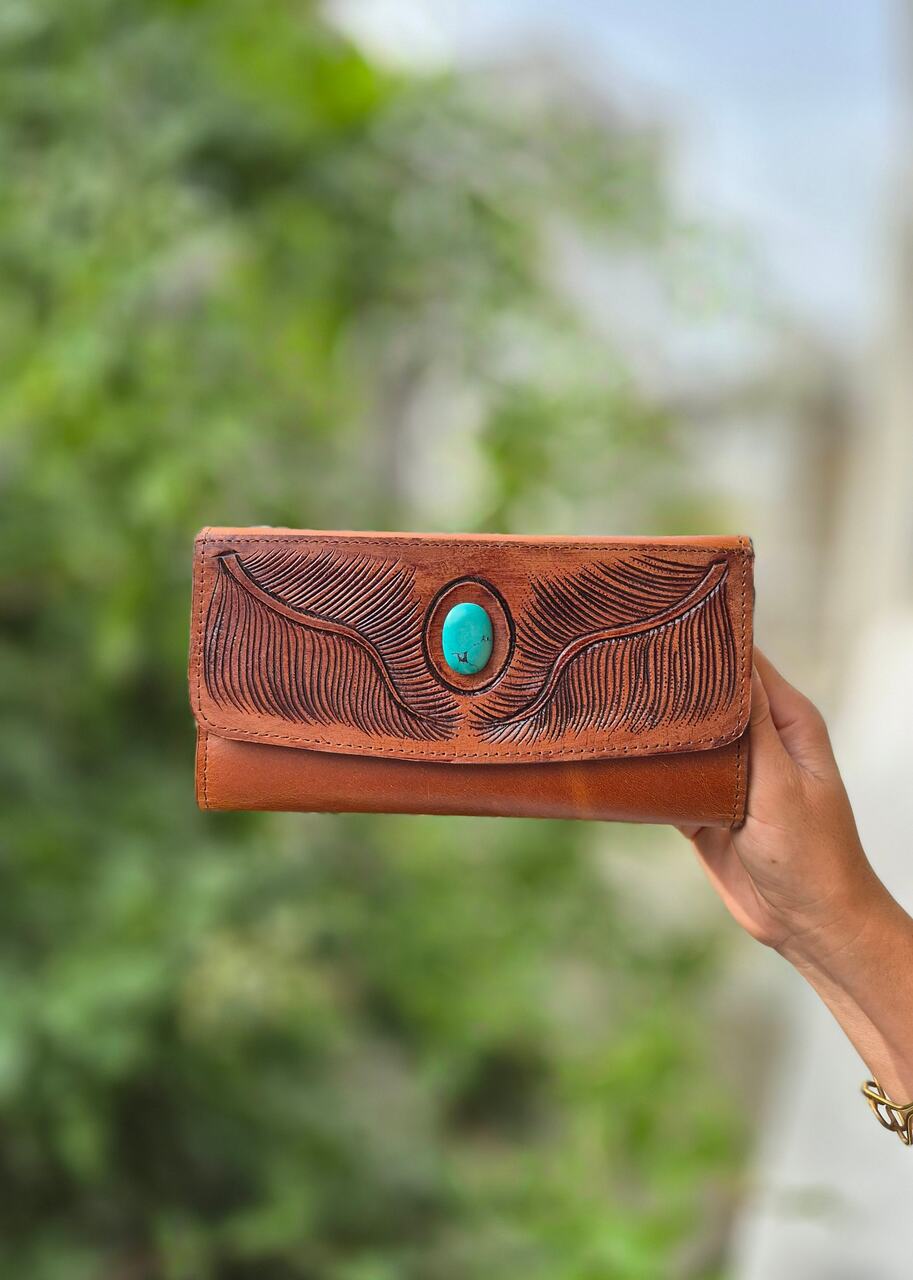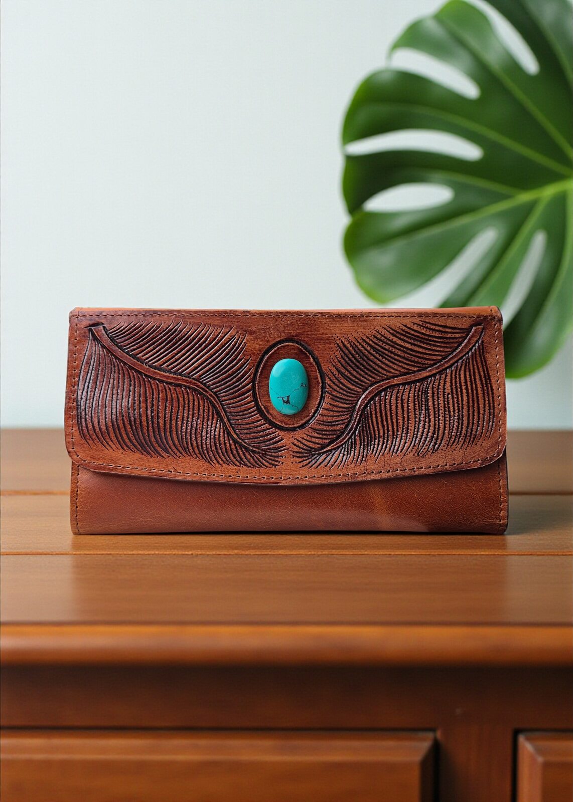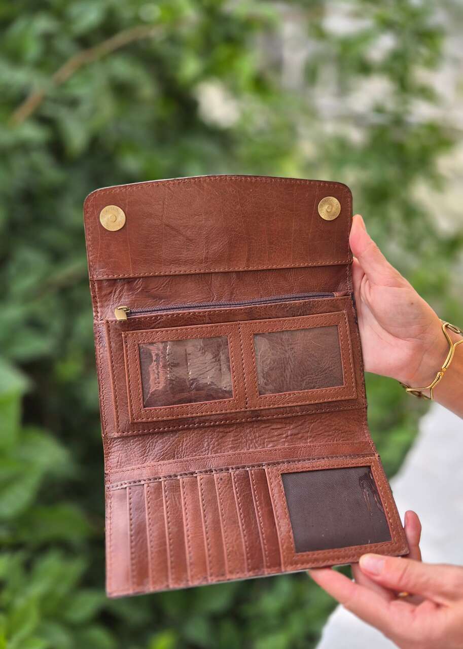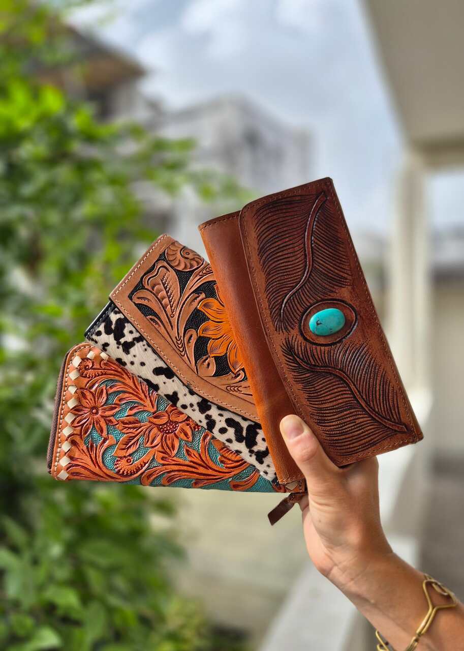 Unikatowy portfel, stworzony ręcznie w Indiach. Wykonany z wysokiej jakości skóry, która z czasem nabiera charakteru i naturalnego połysku. Motywy rzeźbione na powierzchni portfela podkreślają indywidualność i ręczne wykonanie, każdy egzemplarz jest niepowtarzalny. Kieszenie i przegrody są zaprojektowane z myślą o maksymalnej funkcjonalności, mieszcząc karty, banknoty i monety. Produkt odznacza się trwałością i dbałością o szczegóły, co czyni go idealnym dodatkiem na lata.