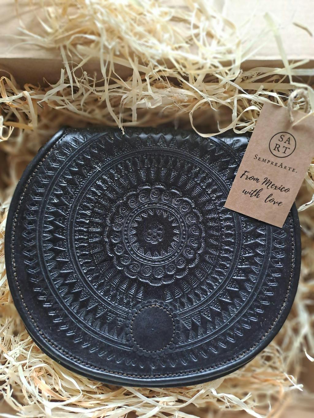 Skóra użyta do wykonania tej torebki jest ręcznie garbowana z zastosowaniem tradycyjnych technik rzemiosła, jest również ręcznie malowana przy użyciu barwników pochodzenia naturalnego.
