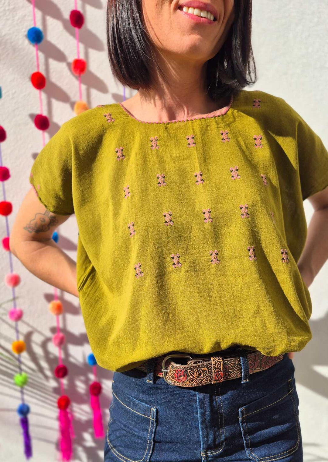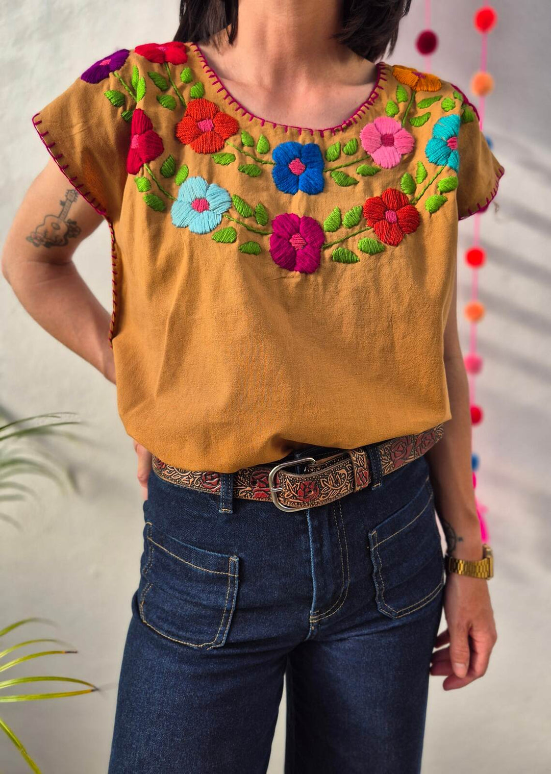 Bluzka haftowana Bordado Musztardowa