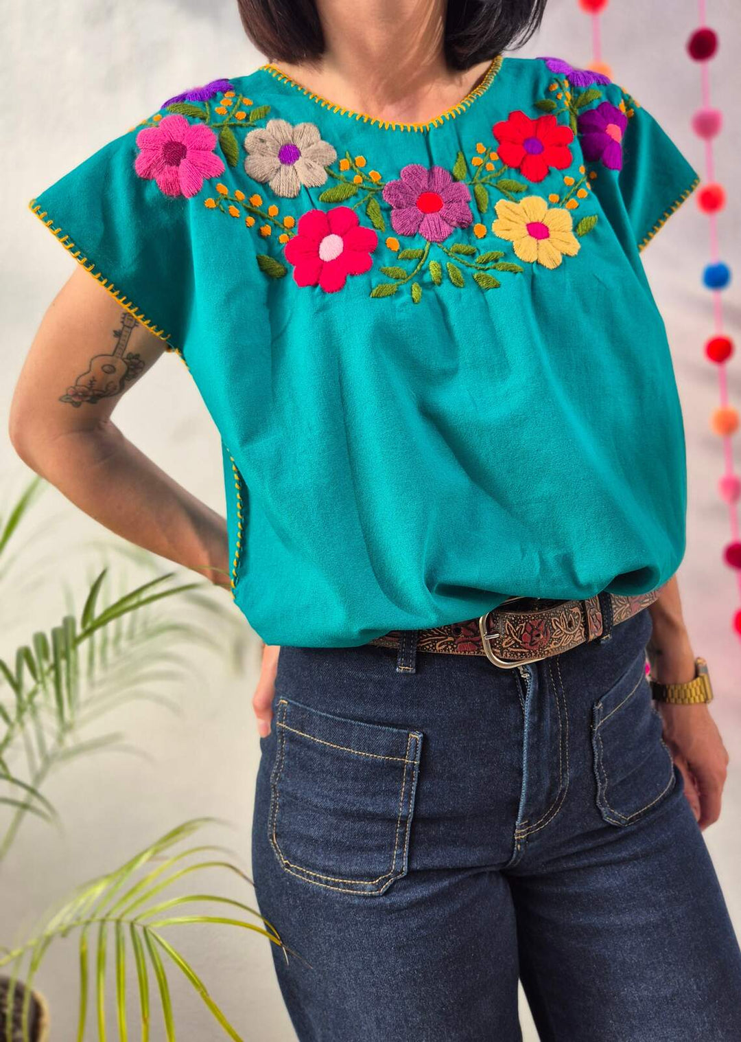 Bluzka haftowana Bordado Turkusowa