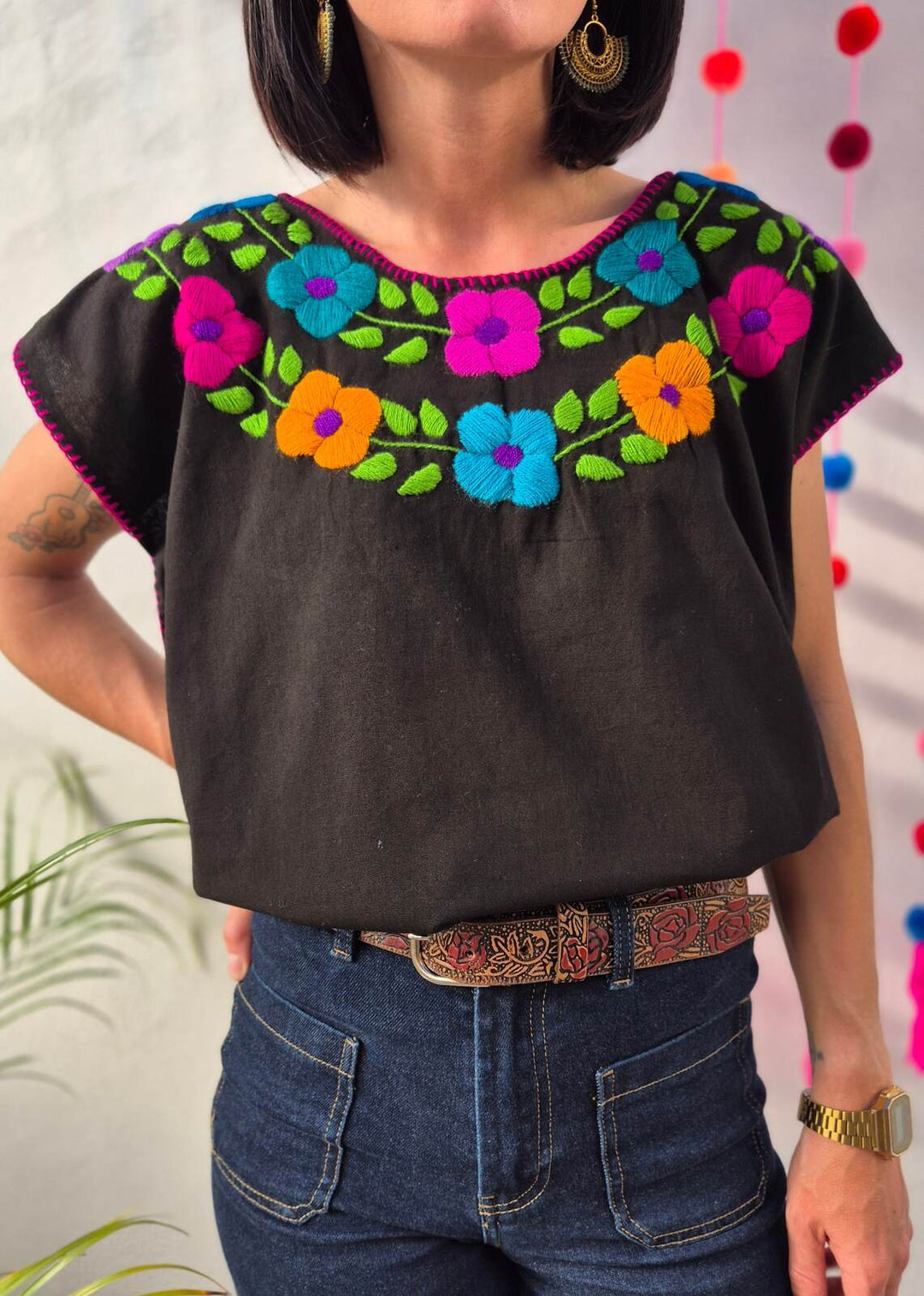 Bluzka haftowana Bordado Czarna