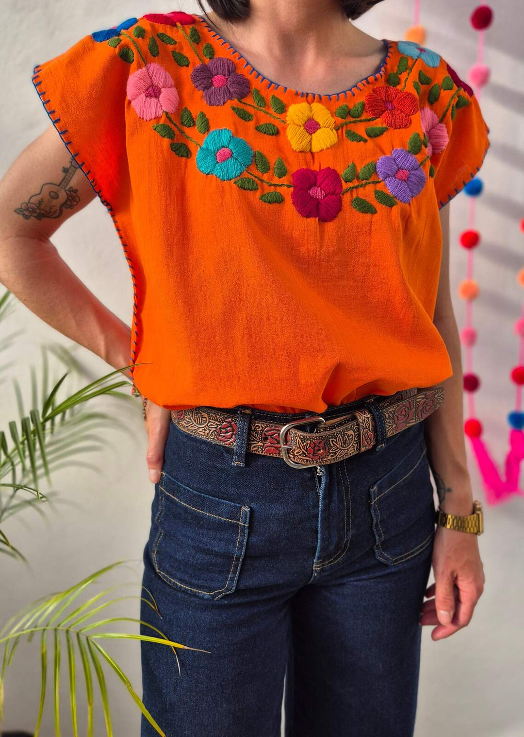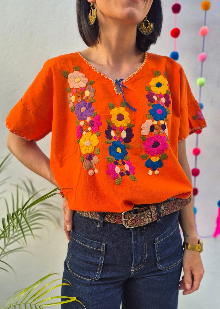 Bluzka haftowana Flores Pomarańczowa
