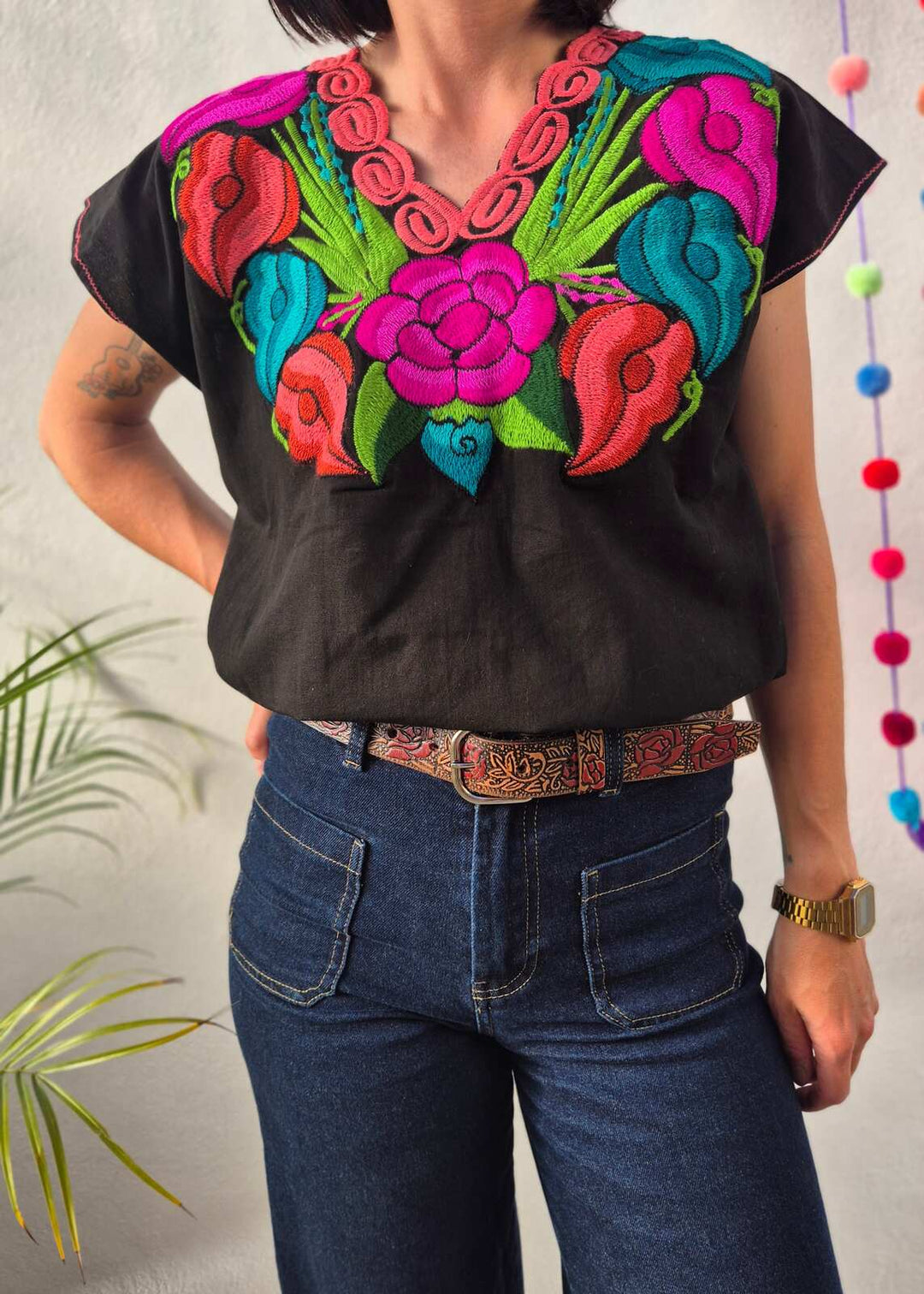 Bluzka haftowana Flores Czarna