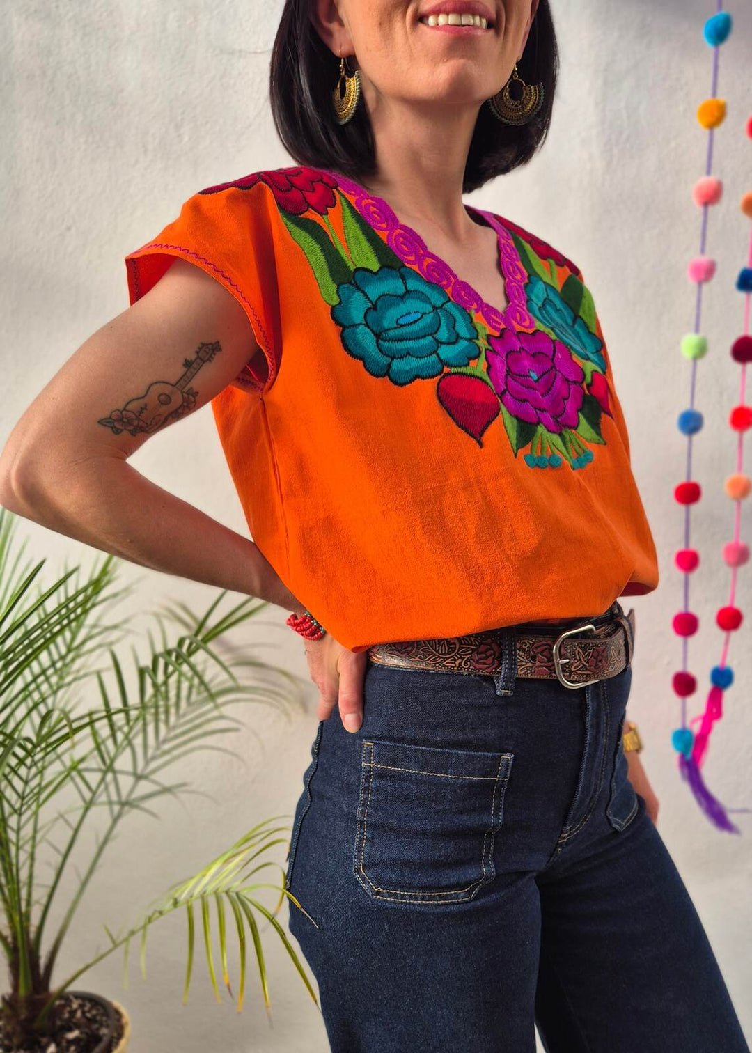 Bluzka haftowana Bordado Pomarańczowa