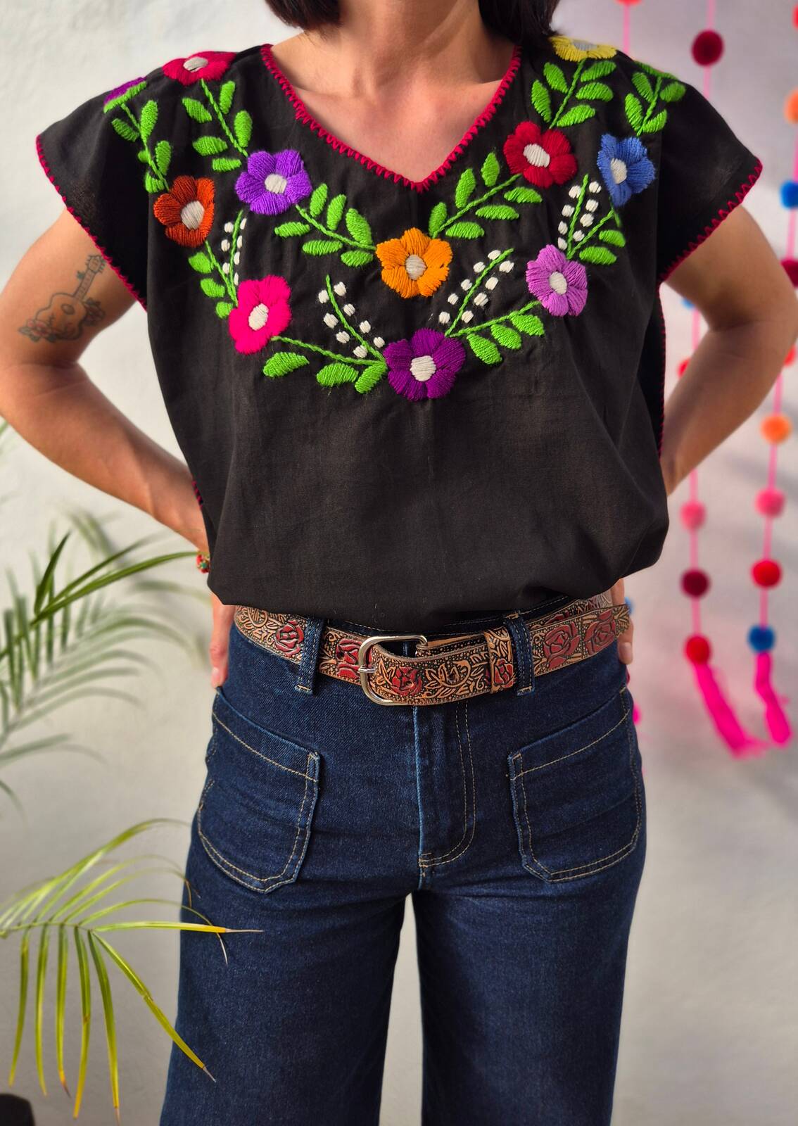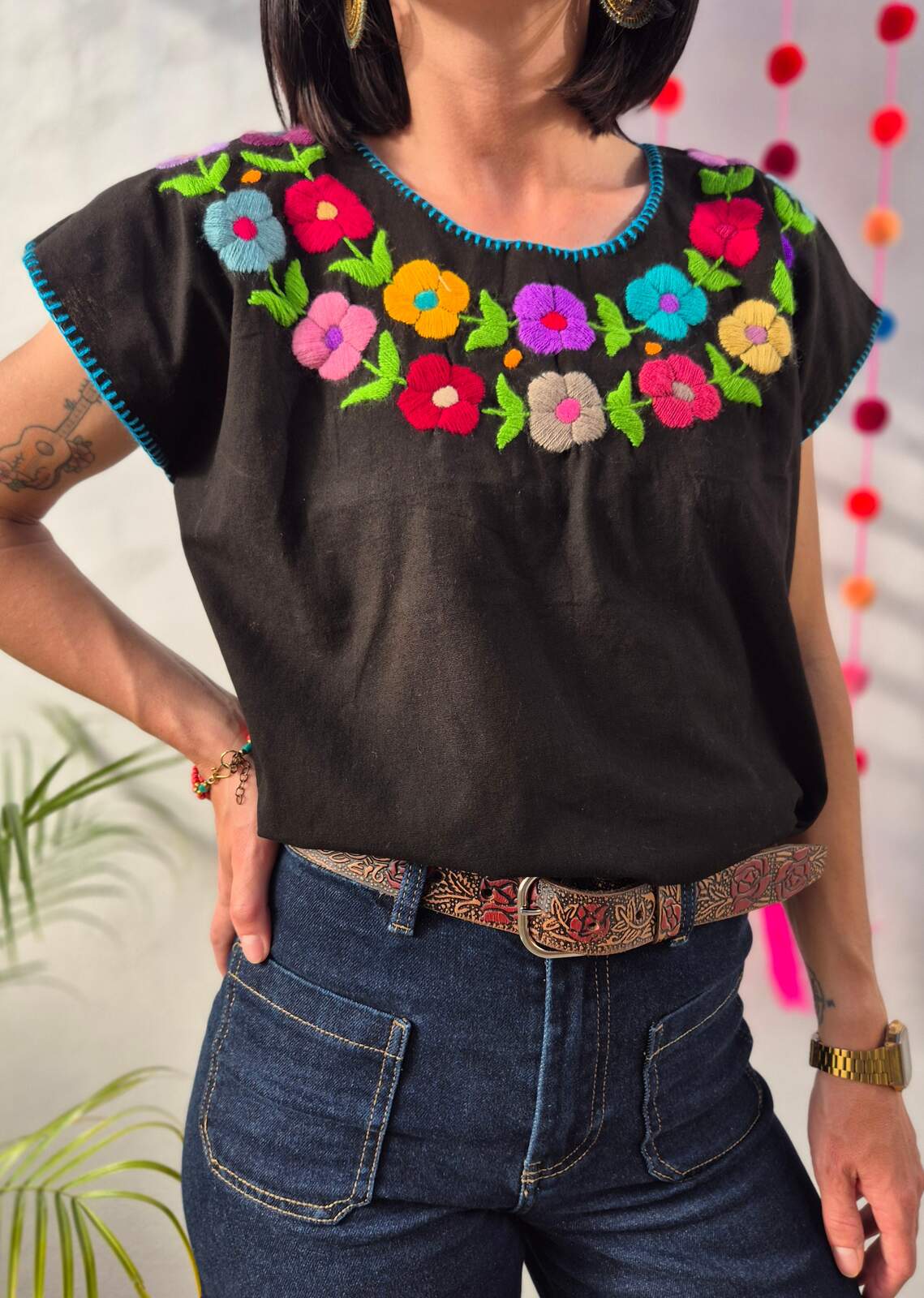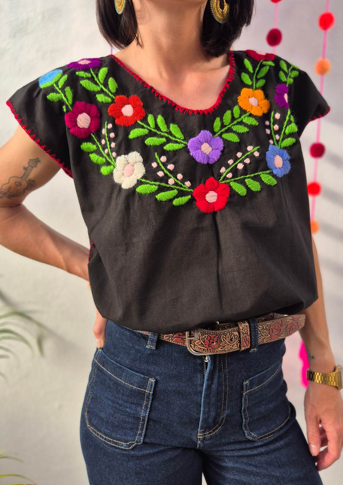 Ręcznie haftowana bluzka wykonana w Meksyku z motywem kwiatowym to unikalny i piękny element garderoby. Delikatne kwiatowe wzory w różnorodnych kolorach są starannie wplecione w tkaninę, co nadaje bluzce autentyczny meksykański charakter. Każdy detal jest starannie wykonany, co sprawia, że bluzka Bordado jest nie tylko wyjątkowa pod względem wizualnym, ale także reprezentuje tradycyjną meksykańską sztukę rzemiosła.