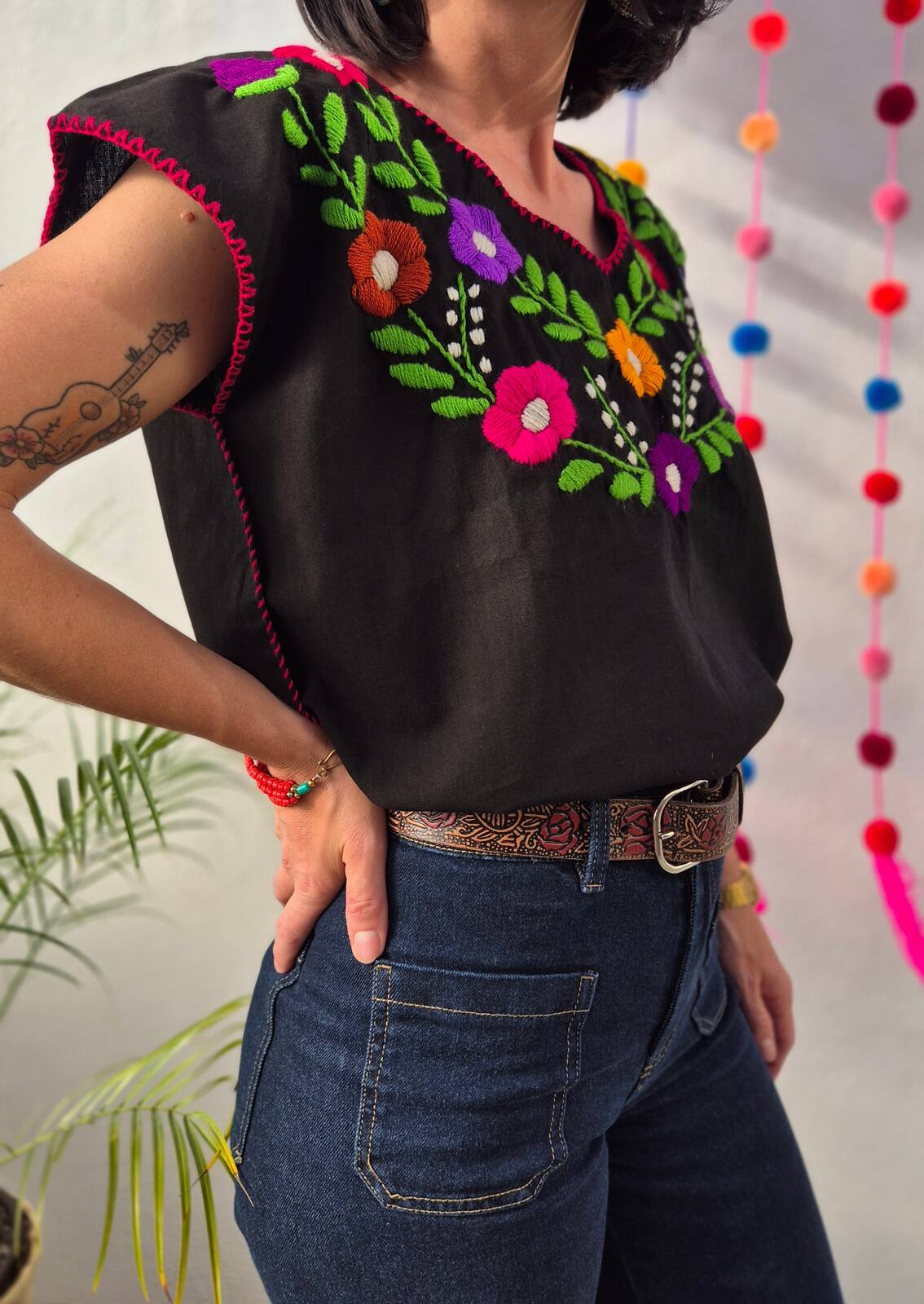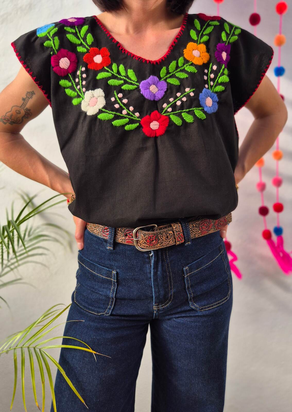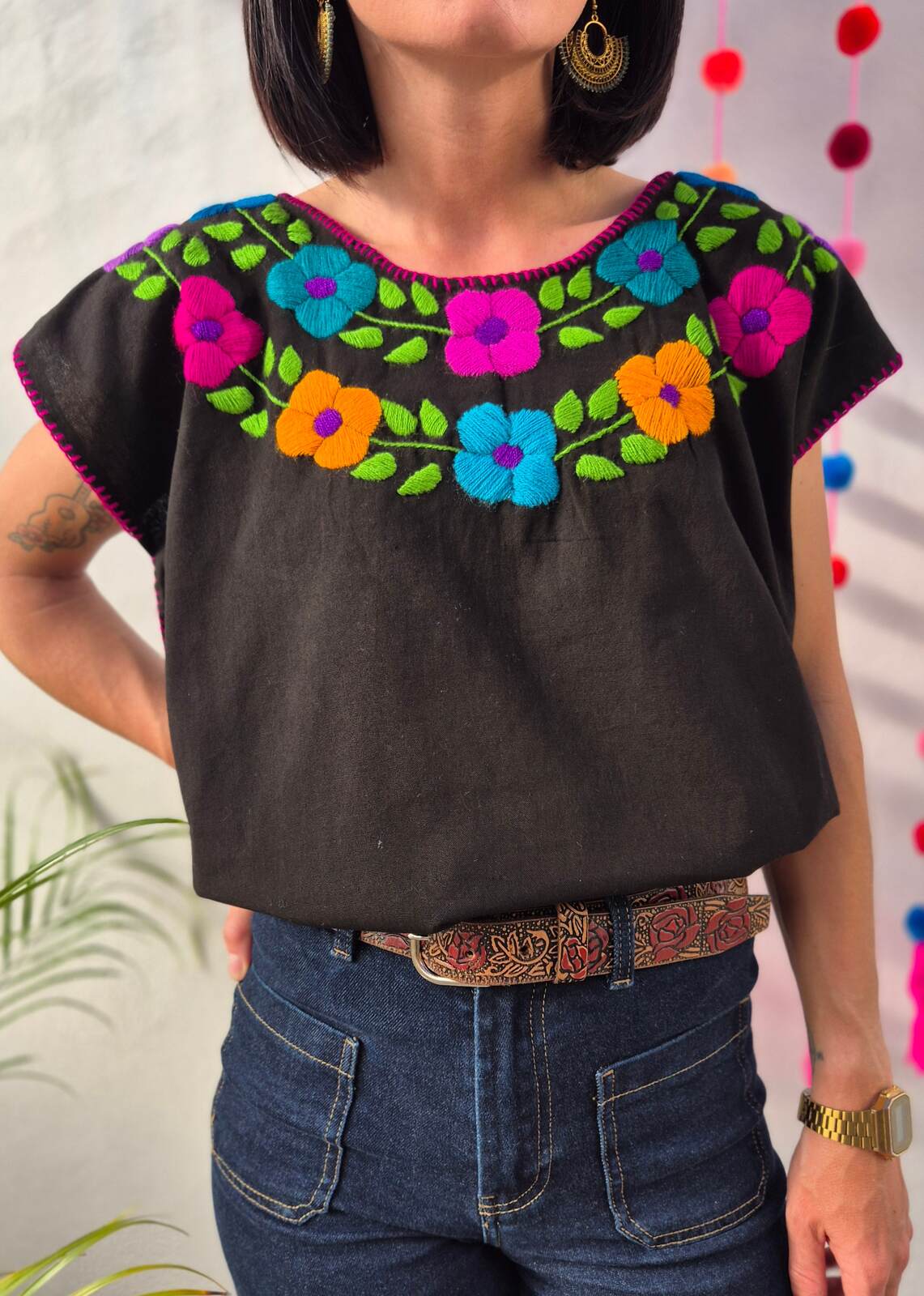 Ręcznie haftowana bluzka wykonana w Meksyku z motywem kwiatowym to unikalny i piękny element garderoby. Delikatne kwiatowe wzory w różnorodnych kolorach są starannie wplecione w tkaninę, co nadaje bluzce autentyczny meksykański charakter. Każdy detal jest starannie wykonany, co sprawia, że bluzka Bordado jest nie tylko wyjątkowa pod względem wizualnym, ale także reprezentuje tradycyjną meksykańską sztukę rzemiosła.