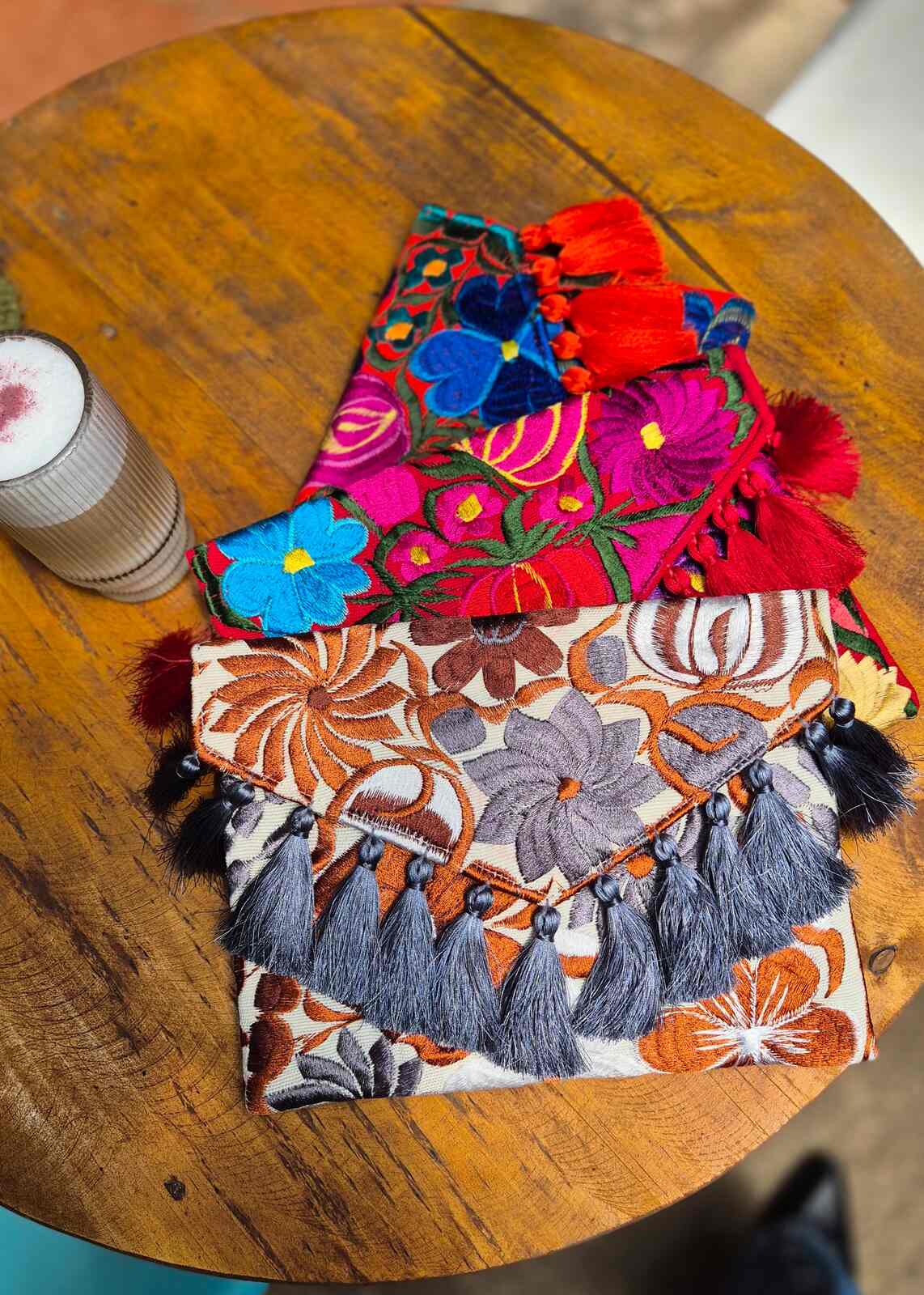 Piękna, haftowana torebka - kopertówka wykonana w Meksyku. Z pewnością a będzie idealnym dodatkiem do wieczorowych, letnich stylizacji. Zapinana jest w środku na zamek błyskawiczny, posiada także dodatkowy pasek, który pozwala nosić ją na ramieniu.