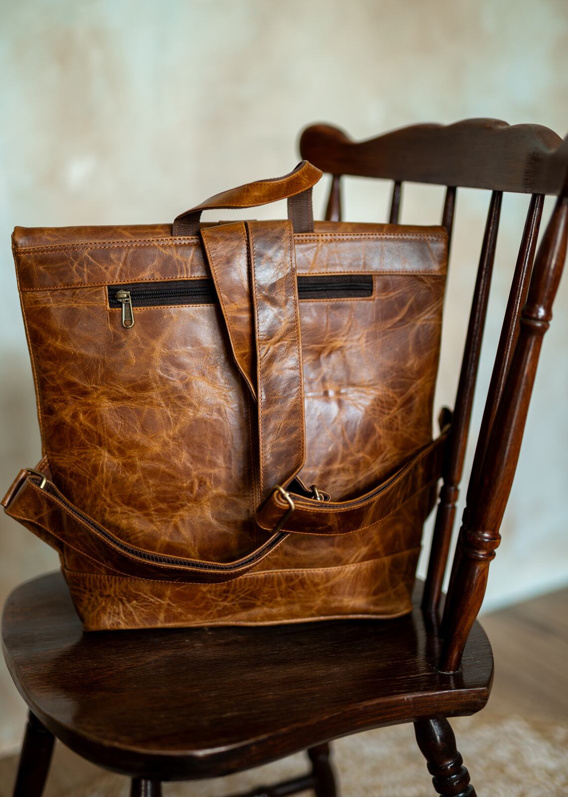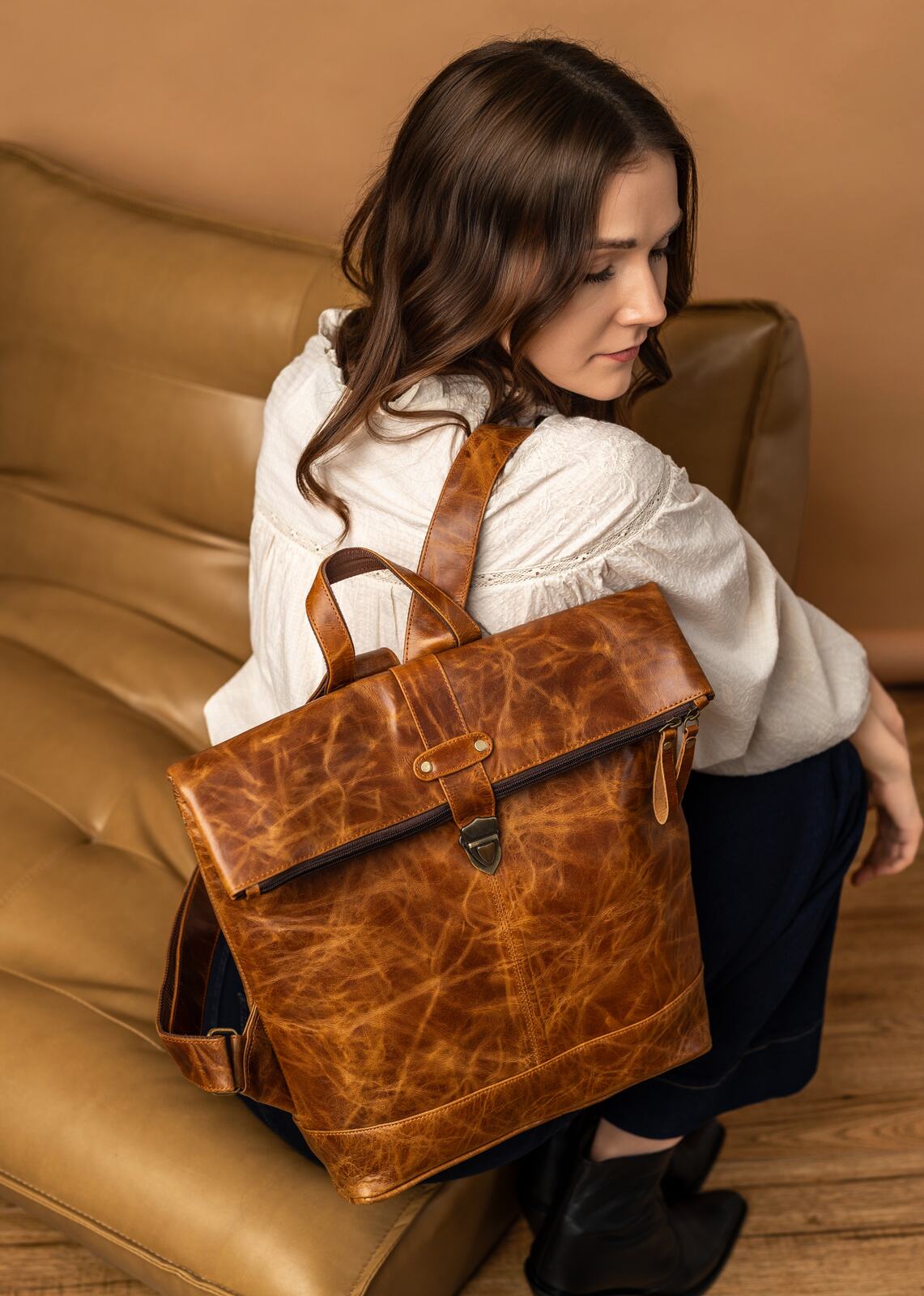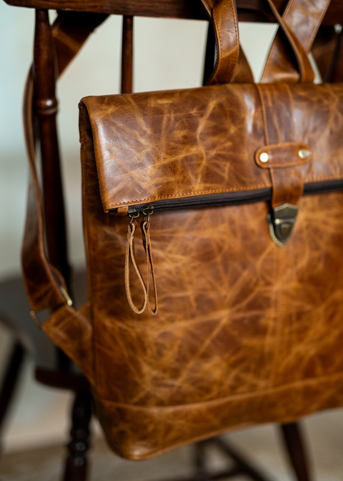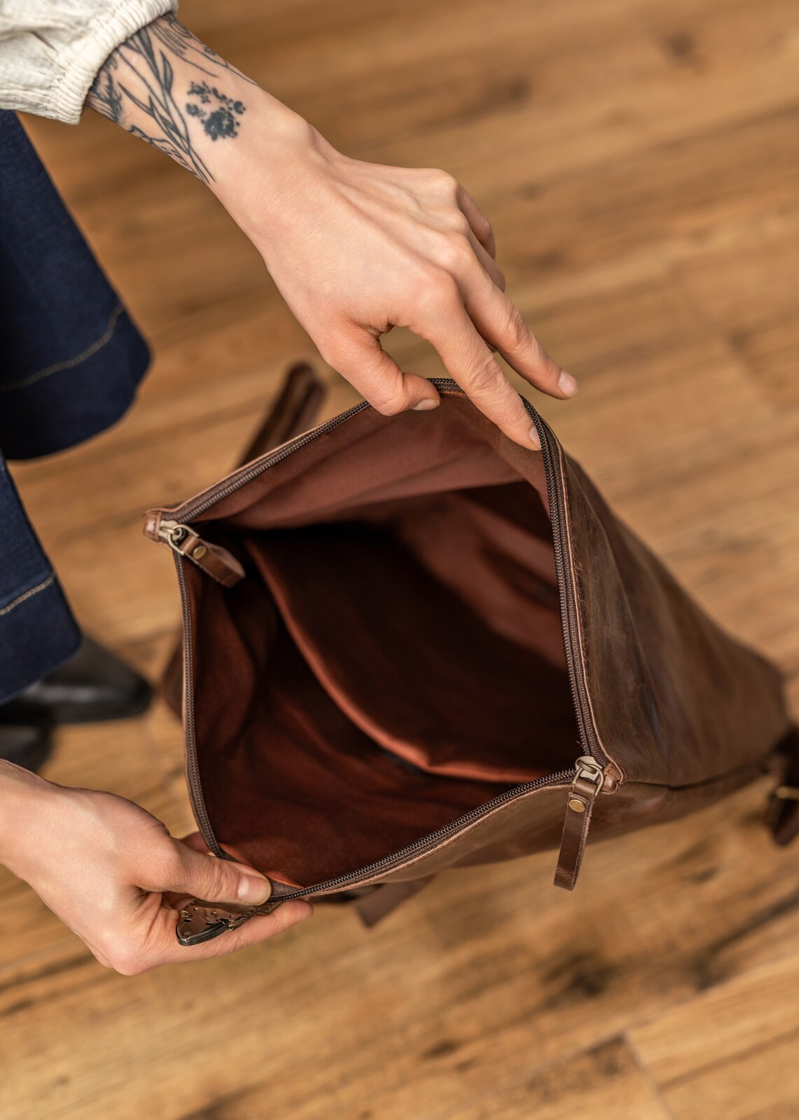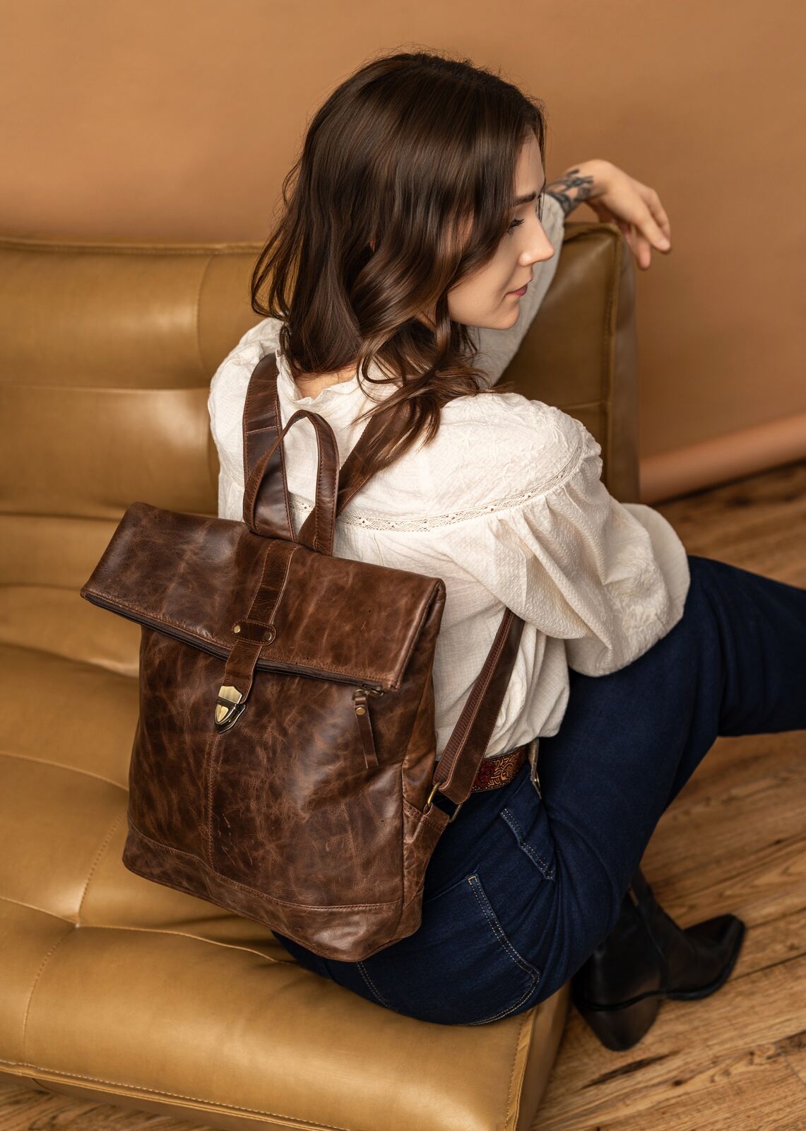 Ręcznie wykonany plecak ze skóry naturalnej, stworzony w Indiach. Plecak wykonany jest ze starannie wyselekcjonowanych materiałów, które gwarantują trwałość i naturalny charakter skóry. Konstrukcja plecaka jest zwijana, co nadaje mu minimalistyczny, ale funkcjonalny wygląd i możliwość regulacji objętości. Wykończenia są precyzyjne, a szwy mocne, co zapewnia długą żywotność nawet przy codziennym użytkowaniu. Naturalne odcienie skóry podkreślają autentyczność produktu i każdy egzemplarz ma unikalną fakturę skóry. Plecak łączy tradycyjne rzemiosło z praktycznością, idealny do miejskiego stylu życia oraz podróży. Dzięki kompaktowej formie, po złożeniu zajmuje niewiele miejsca, a po rozłożeniu zyskuje pełną pojemność na codzienne rzeczy.