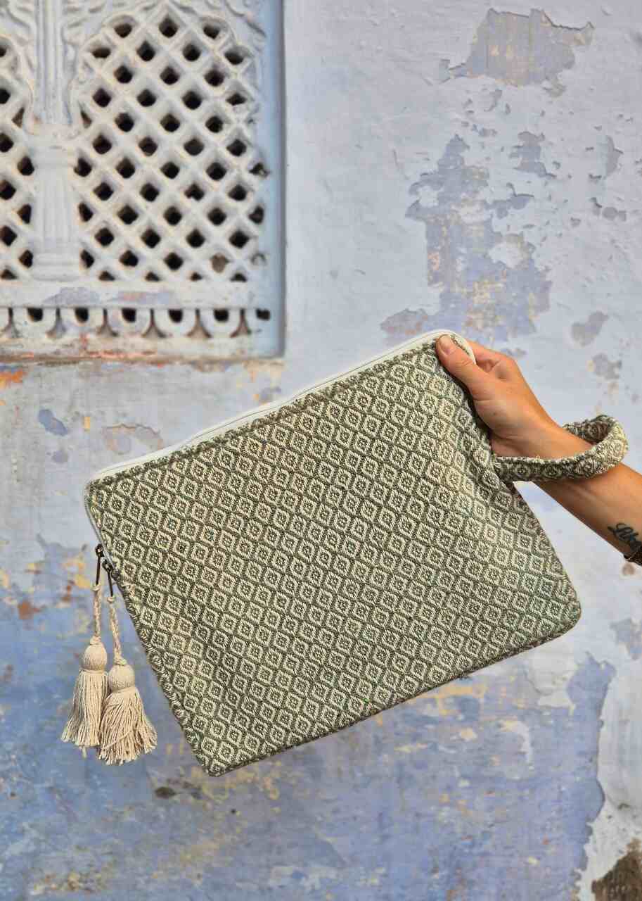 Pokrowiec na laptopa z tkanego bawełnianego materiału łączy naturalny styl z praktyczną ochroną sprzętu. Wytrzymałe, tkaninowe wykończenie zapewnia lekką ochronę przed kurzem i drobnymi otarciami podczas codziennego noszenia. Prosta, minimalistyczna forma oraz neutralne kolory sprawiają, że pokrowiec pasuje do różnych stylizacji i okazji. Naturalny materiał podkreśla ekologiczny charakter.![]()