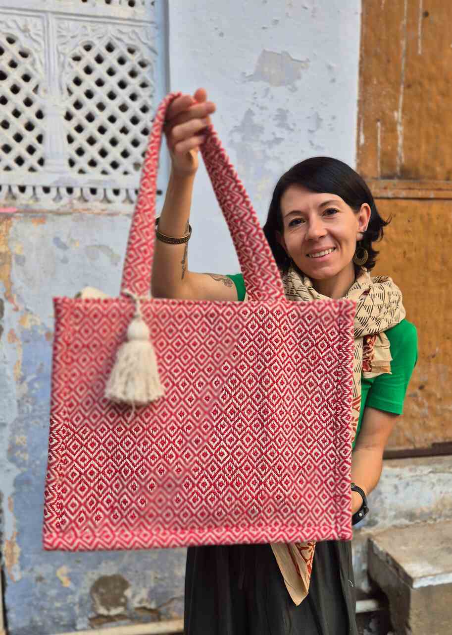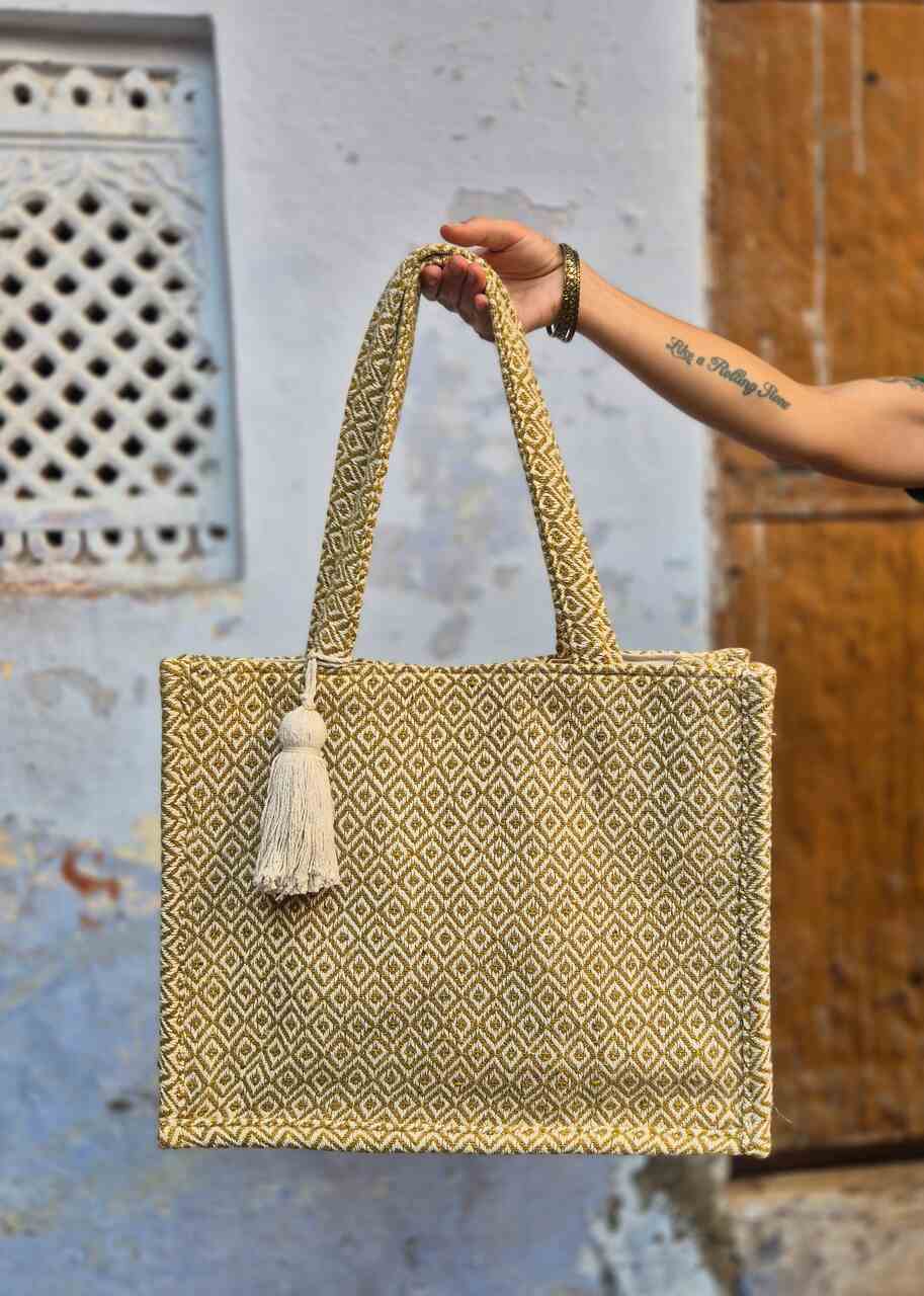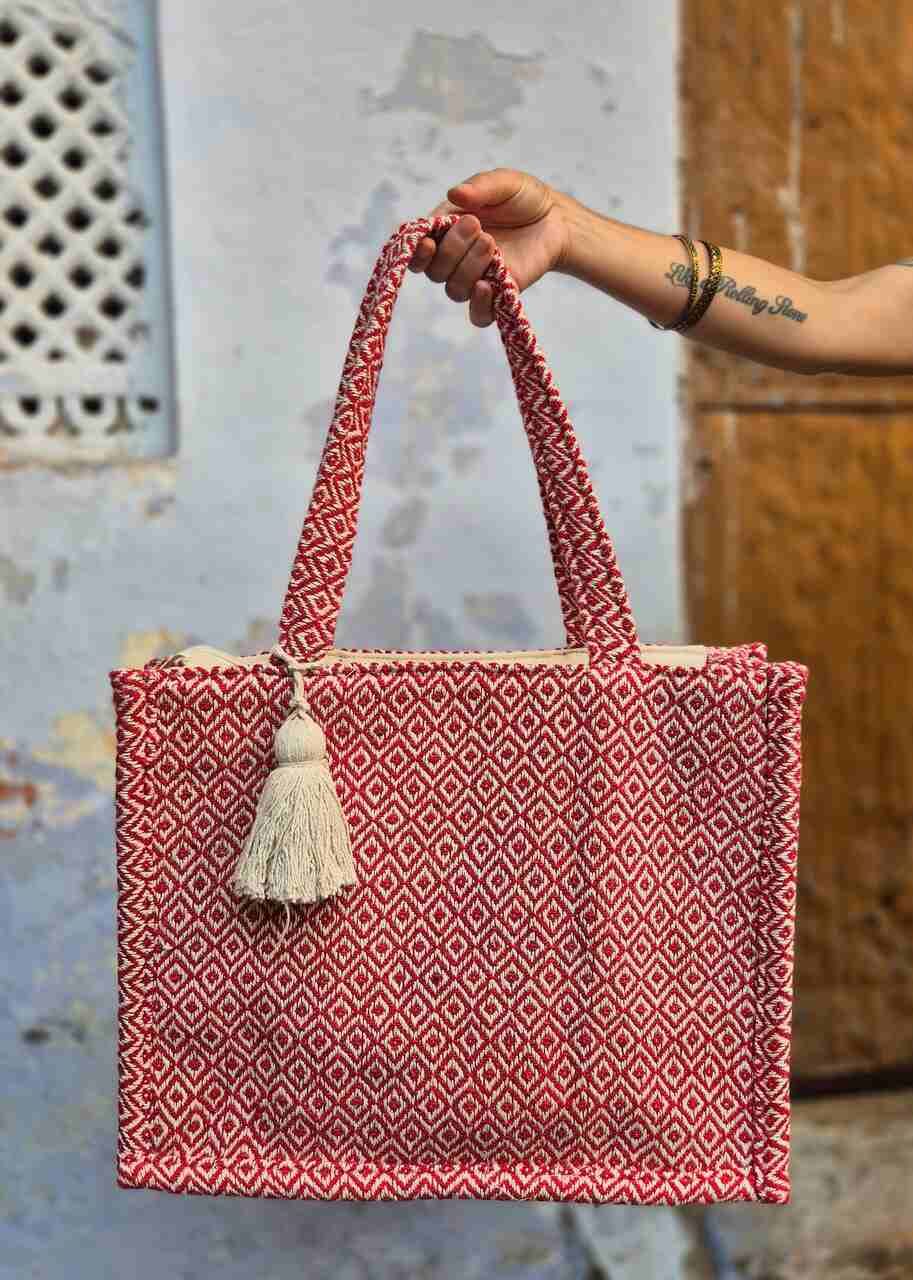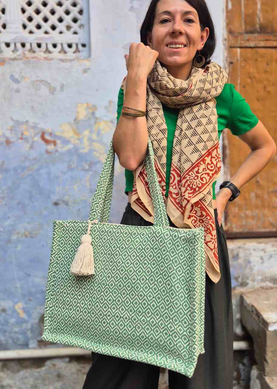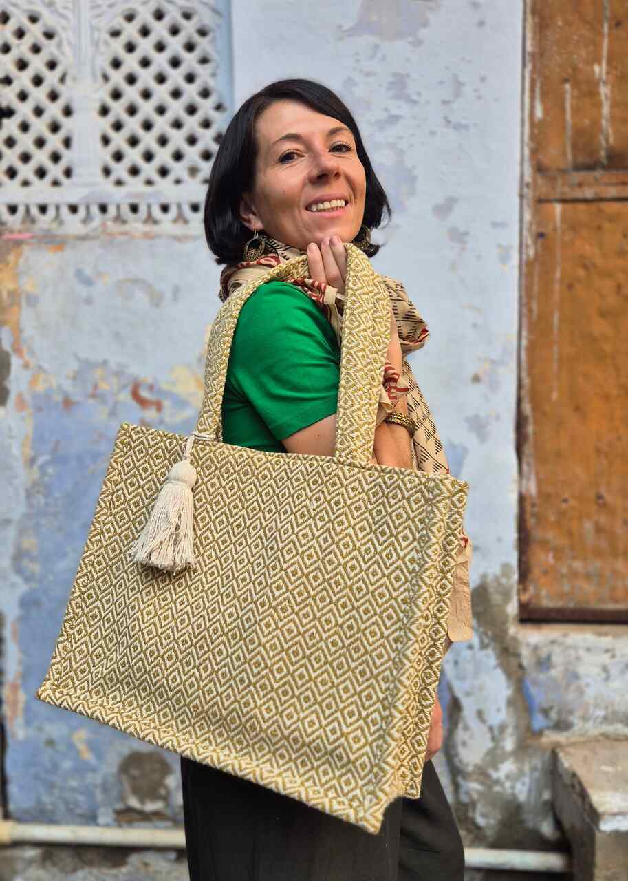 Duża, pojemna torebka na co dzień wykonana z tkanego bawełnianego materiału, która łączy trwałość z naturalnym stylem. Wnętrze wyposażone w przegrodę na laptopa, zapewniającą bezpieczne i organizacyjne przechowywanie sprzętu. Solidny materiał bawełniany gwarantuje wygodę noszenia i dobrą odporność na codzienne użytkowanie. Prosta, uniwersalna forma pasuje do wielu stylizacji i okazji, od pracy po spacer po mieście. Naturalny wygląd bawełny podkreśla ekologiczny charakter torby, która jest bezpieczna dla środowiska.