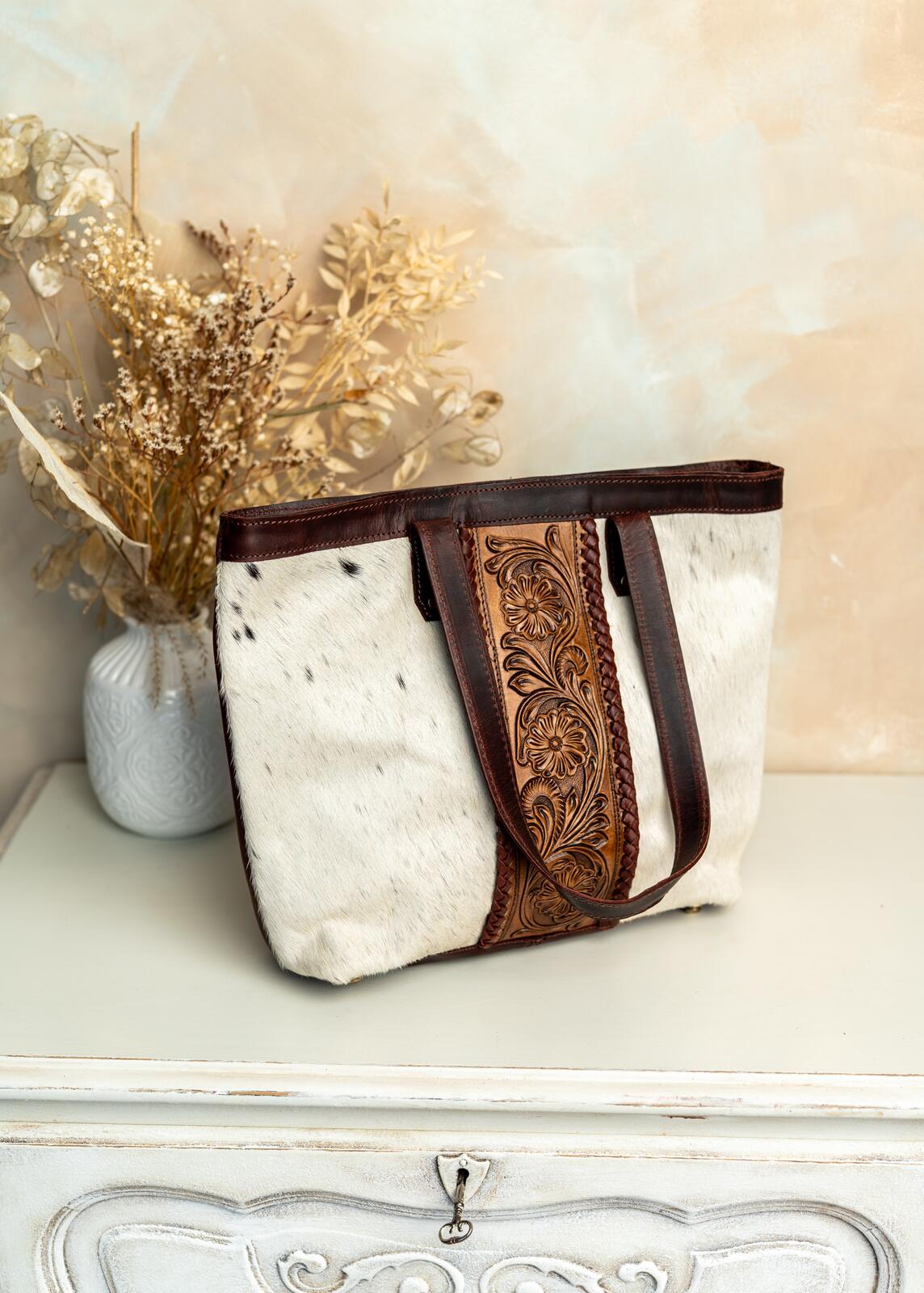MATERIAŁ PREMIUM: Wykonana ręcznie w Indiach z naturalnej skóry z włosiem, która nadaje torebce luksusowy wygląd i unikalny charakter z subtelnym połyskiem