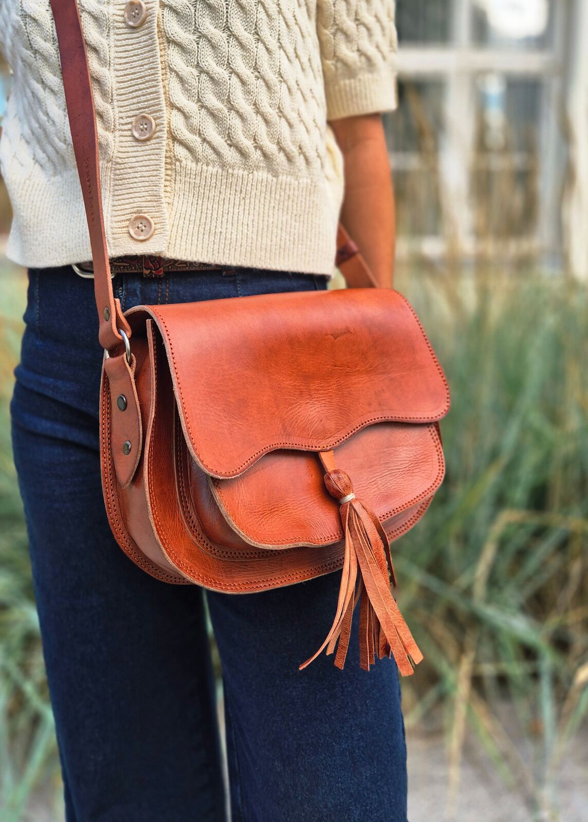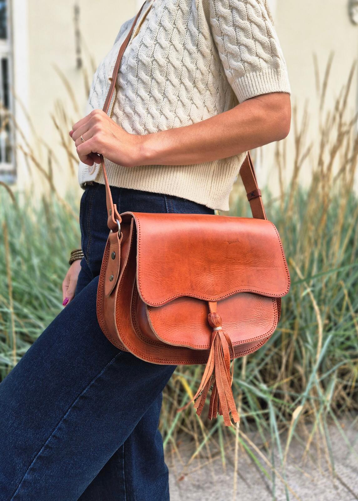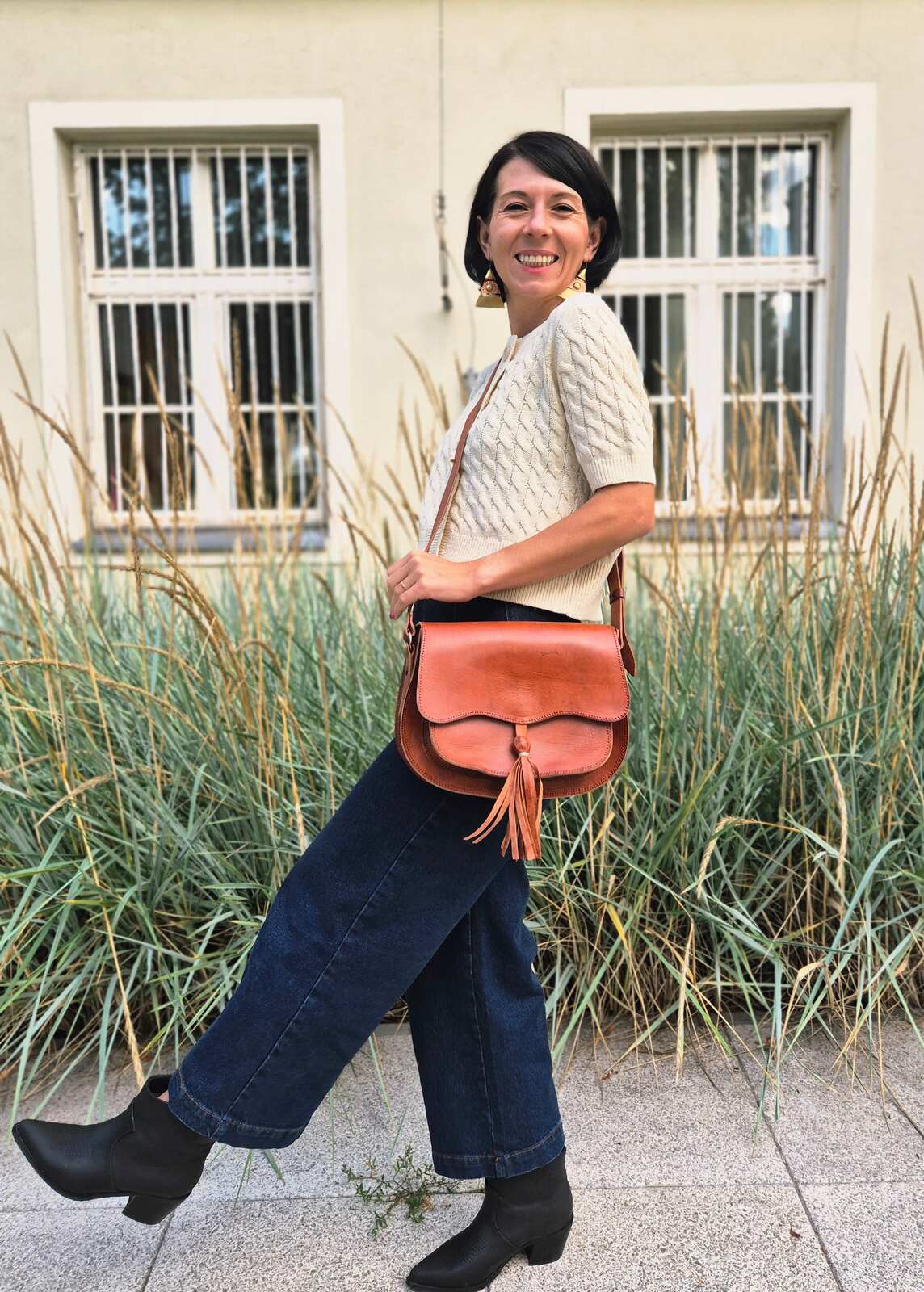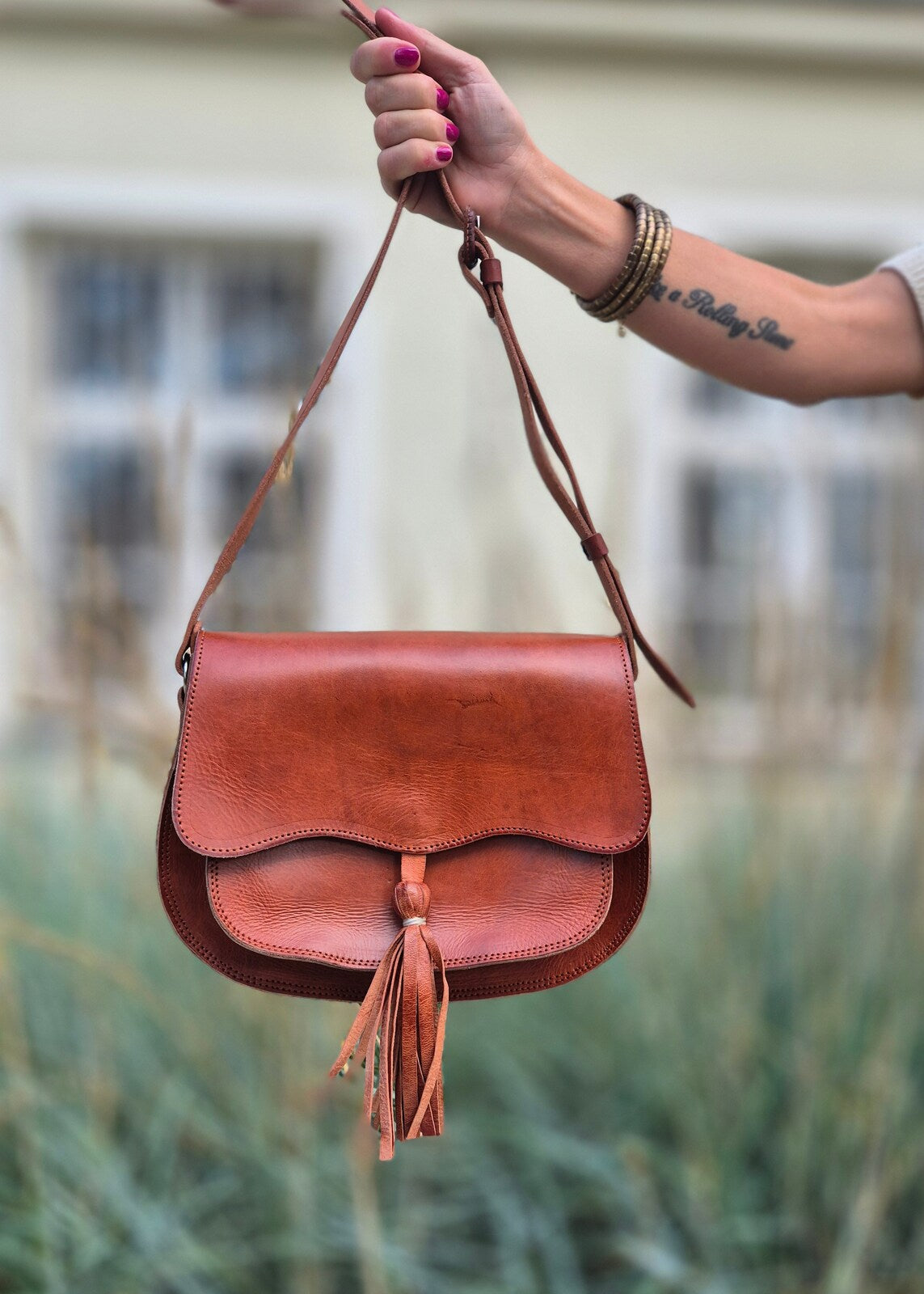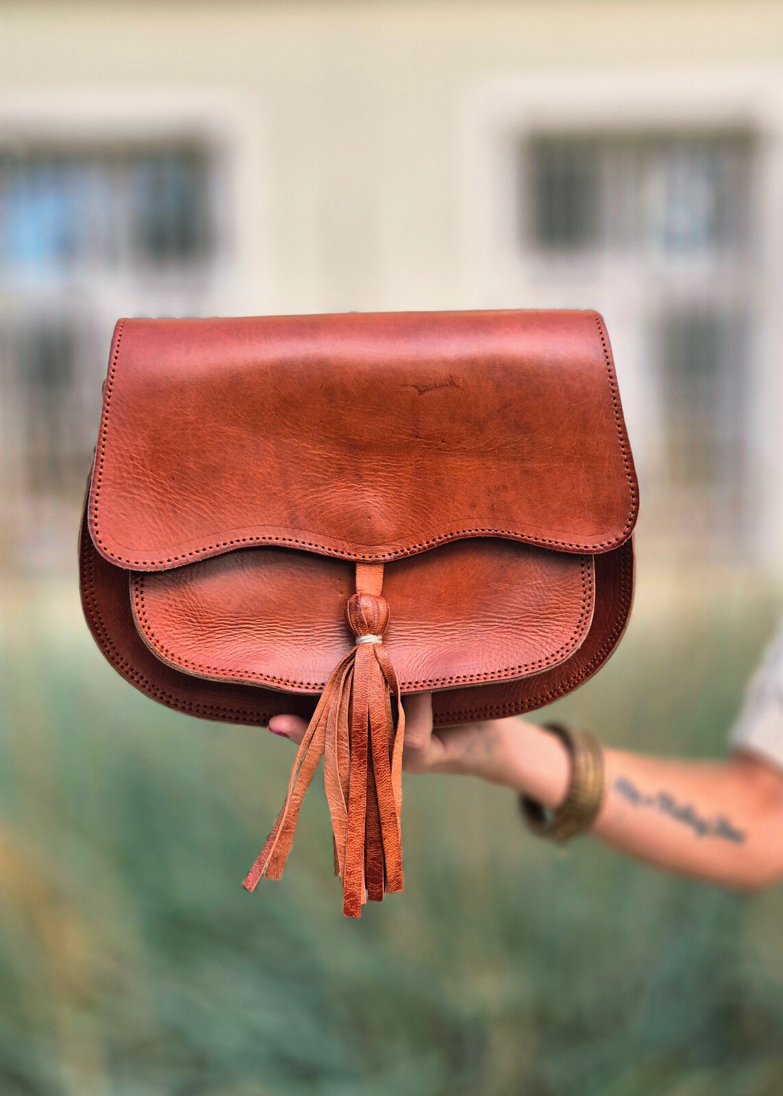 Duża torebka ręcznie wykonana w Meksyku jest prawdziwym majstersztykiem. Wykonana z gładkiej skóry juchtowej, oferuje trwałość i elegancję w jednym. Jej przestronny wnętrze zapewnia dużo miejsca na przechowywanie wszystkich niezbędnych przedmiotów. Ciekawe zapięcie torebki dodaje jej charakteru i oryginalności, stanowiąc zarazem praktyczny element. Skóra juchtowa jest nie tylko wytrzymała, ale również pięknie się starzeje, nabierając naturalnej patyny z czasem. Torebka posiada wygodny, regulowany pasek, który umożliwia noszenie jej na ramieniu lub na skos. Jej klasyczny design pasuje zarówno do casualowych, jak i bardziej formalnych stylizacji. Jest nie tylko praktyczna, ale także piękna i unikalna, przyciągając uwagę wszystkich miłośników rzemieślnictwa i pięknych przedmiotów.