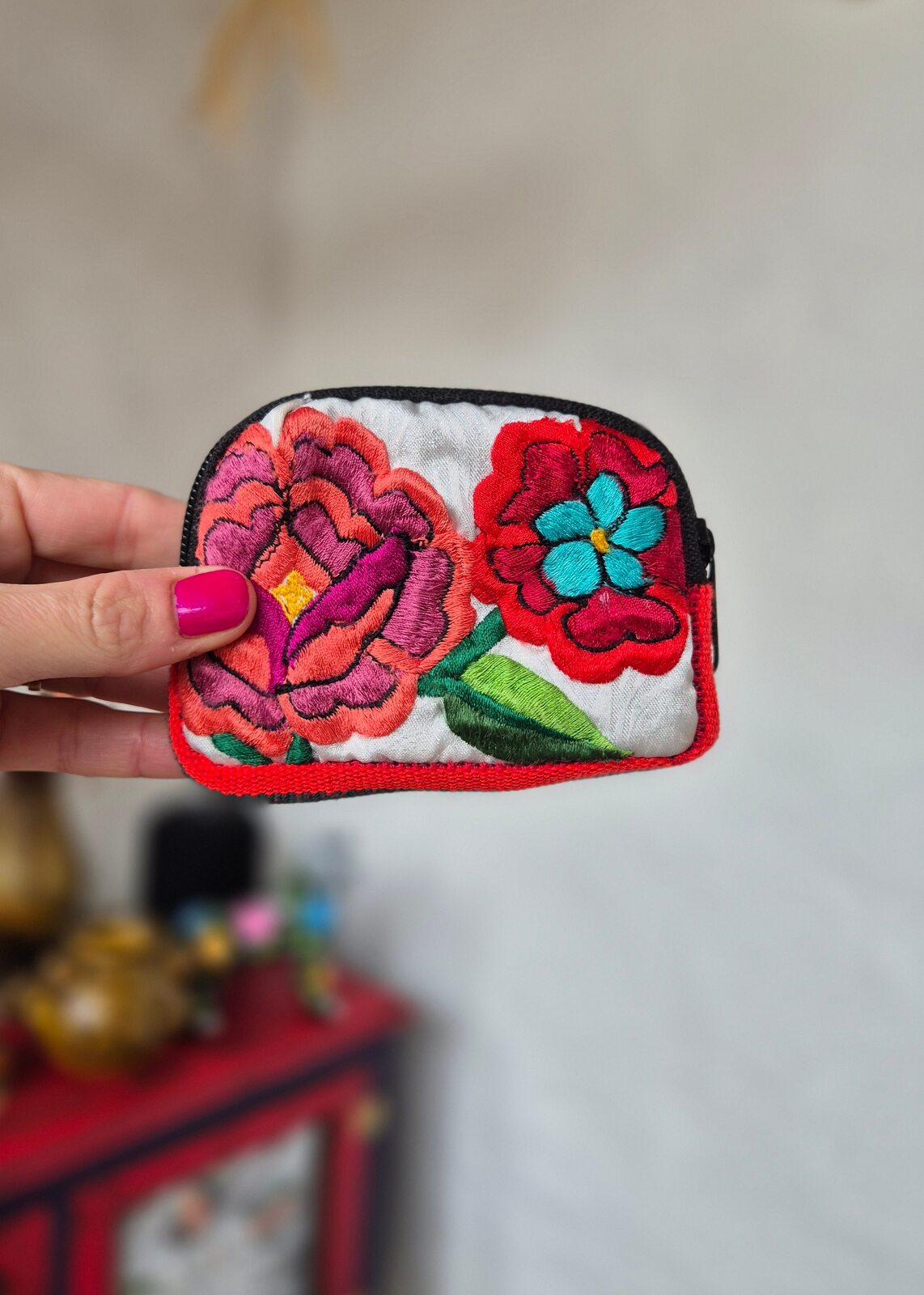 Small, handy pouch covered with extraordinary Mexican embroidery. It can be used as a small everyday purse or a pouch for small items. Each pouch has a unique, unrepeatable pattern!