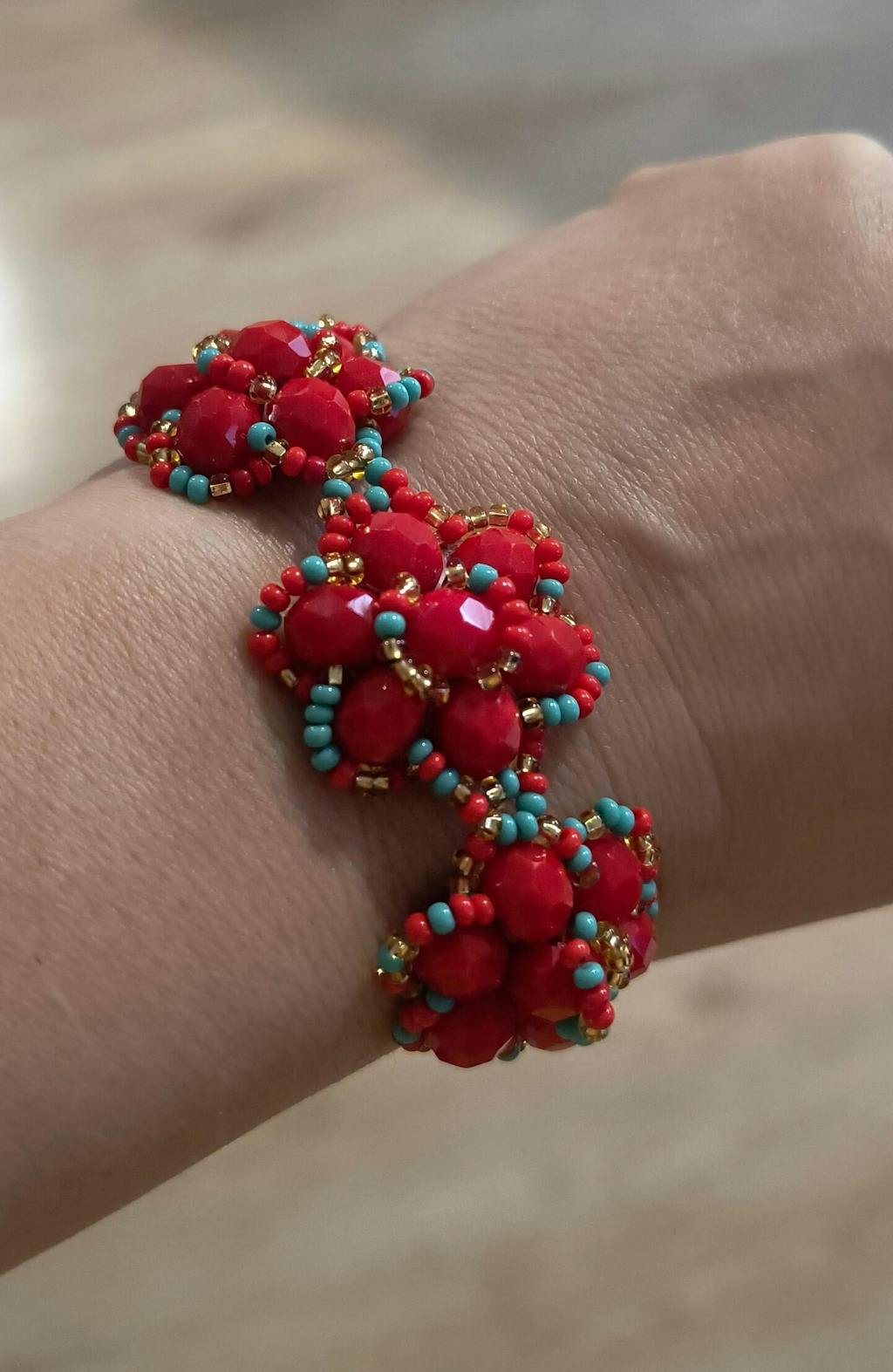 Urokliwa bransoletka z koralików wykonana w Meksyku. Każdy detal został starannie wykonany tworząc elegancki i romantyczny dodatek.