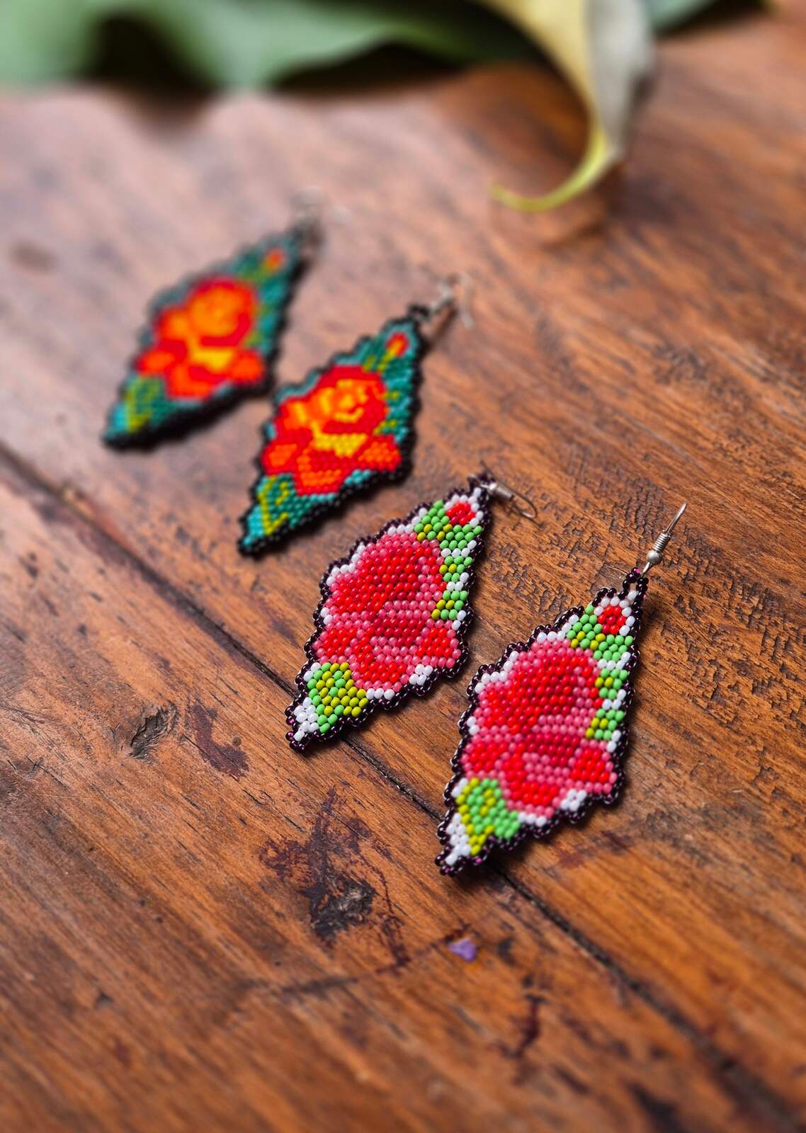 Ręcznie plecione kolczyki z koralików wykonane w Meksyku to wyjątkowe i kolorowe akcesoria, które przyciągają uwagę swoją unikalną finezją. Każdy kolczyk jest starannie wykonany z różnokolorowych koralików, tworzących piękne wzory i motywy inspirowane meksykańską kulturą. Te ręcznie robione kolczyki są nie tylko wyrazem artystycznego rzemiosła, ale także noszą ze sobą ducha i historię meksykańskiego dziedzictwa.