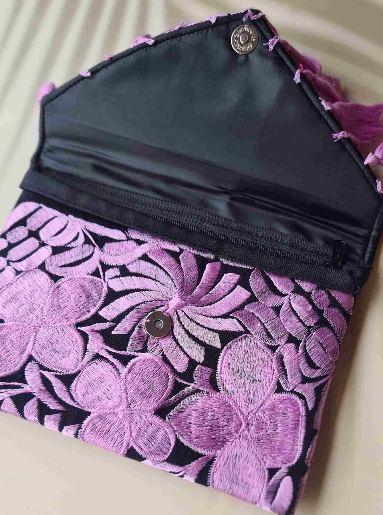Haftowana kopertówka ze wzorami wykonana w Meksyku to unikalny i kolorowy dodatek, który odzwierciedla bogactwo kultury meksykańskiej. Torebka posiada haftowane wzory, które są charakterystyczne dla meksykańskiego rzemiosła ludowego. Kolorystyka kopertówki jest ciekawa i intensywna, często wykorzystuje bogatą paletę. Kopertówka ma praktyczny rozmiar, który pozwala na przechowywanie niezbędnych przedmiotów, takich jak telefon komórkowy, portfel czy klucze. Jest nie tylko funkcjonalna, ale także wyjątkowo piękna, stanowiąc niepowtarzalny element stroju i wyrażając meksykańską kreatywność i tradycję.